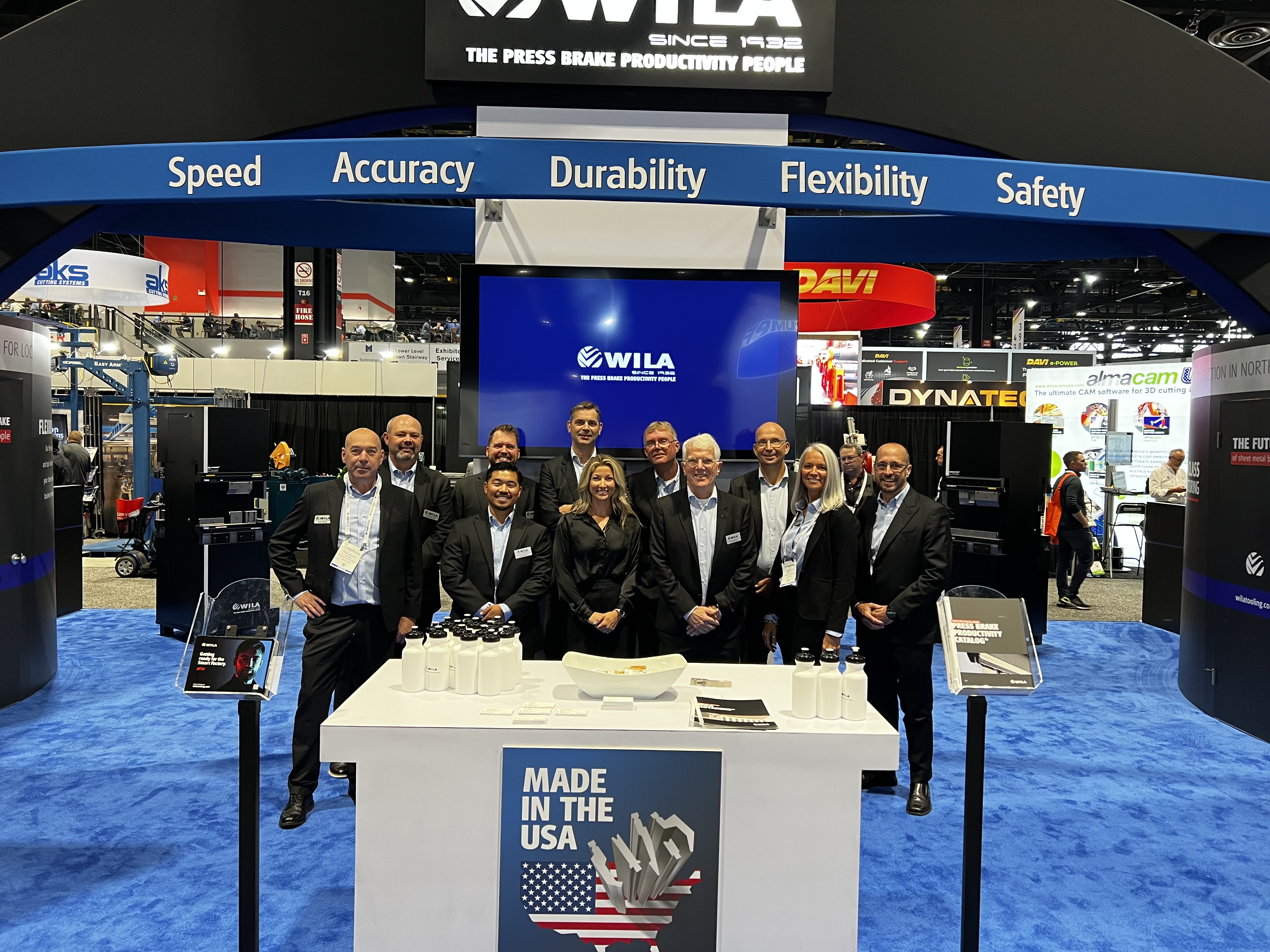 WILA had a successful participation at the Fabtech trade show in Chicago! The overall market sentiment was very positive driven by reshoring manufacturing to the USA and the numerous projects containing automation solutions. Automation of the press brake process fits perfectly to the product offering and product engineering experience of WILA. High precision and durable tooling and clamping systems are key to process control and thus automation.