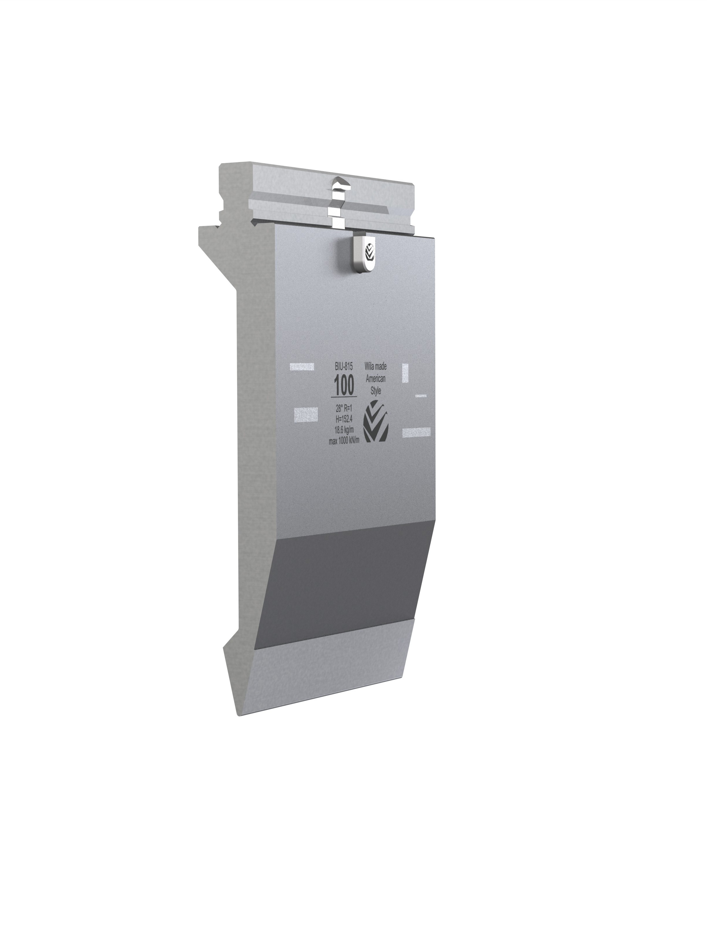 American Style Oberwerkzeug mit Arbeitshöhe=152.4mm, α=28°, Radius=1mm, geschliffen und CNC-Tiefgehärtet® (mindestens 4mm / 52-60HRc), Material=CR-MO, Max. Belastung=100ton/m. Versehen mit Safety-Clicks™ und deswegen vertikal zu wechseln.
