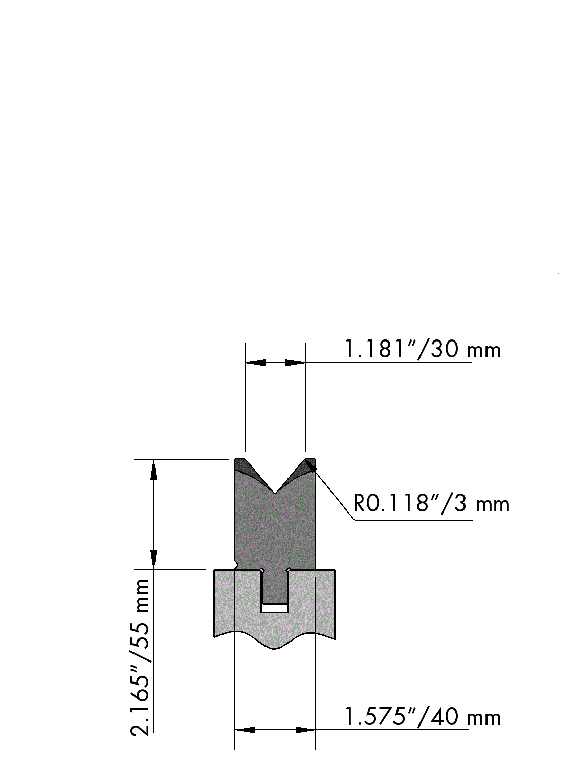American Style Unterwerkzeug Arbeitshöhe=55mm, V-öffnung=30mm/88°, Biegeradius=3mm, geschliffen und CNC-Tiefgehärtet® (mindestens 4mm / 52-60HRc), Material=CR-MO.