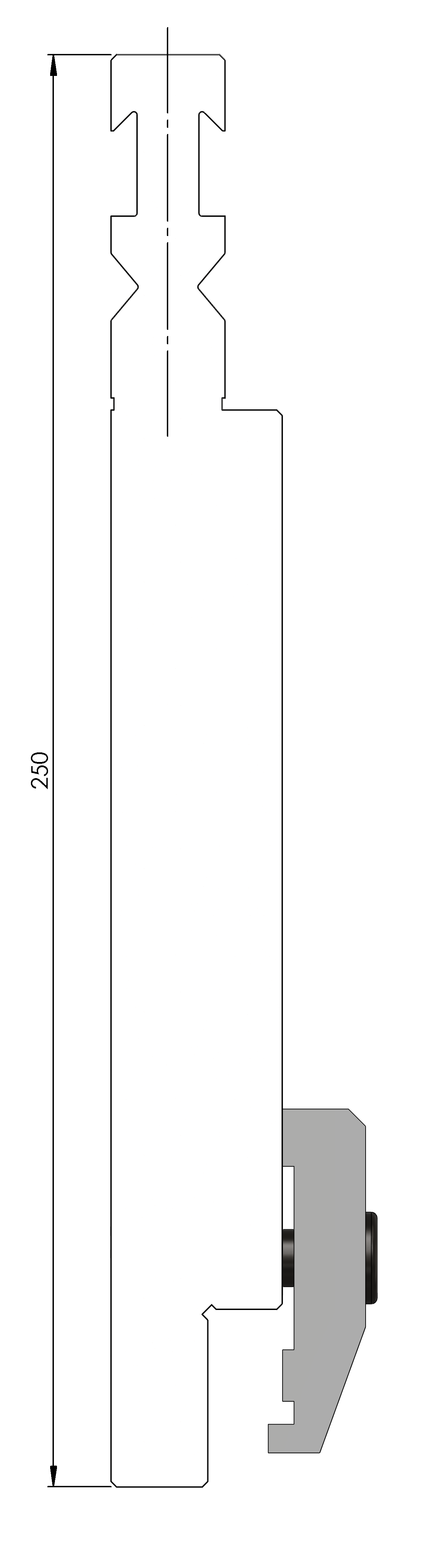 Arbeitshöhe=185mm, Breite=46.5mm, Material=C45, nicht gehärtet, Max. Belastung=160ton/m.