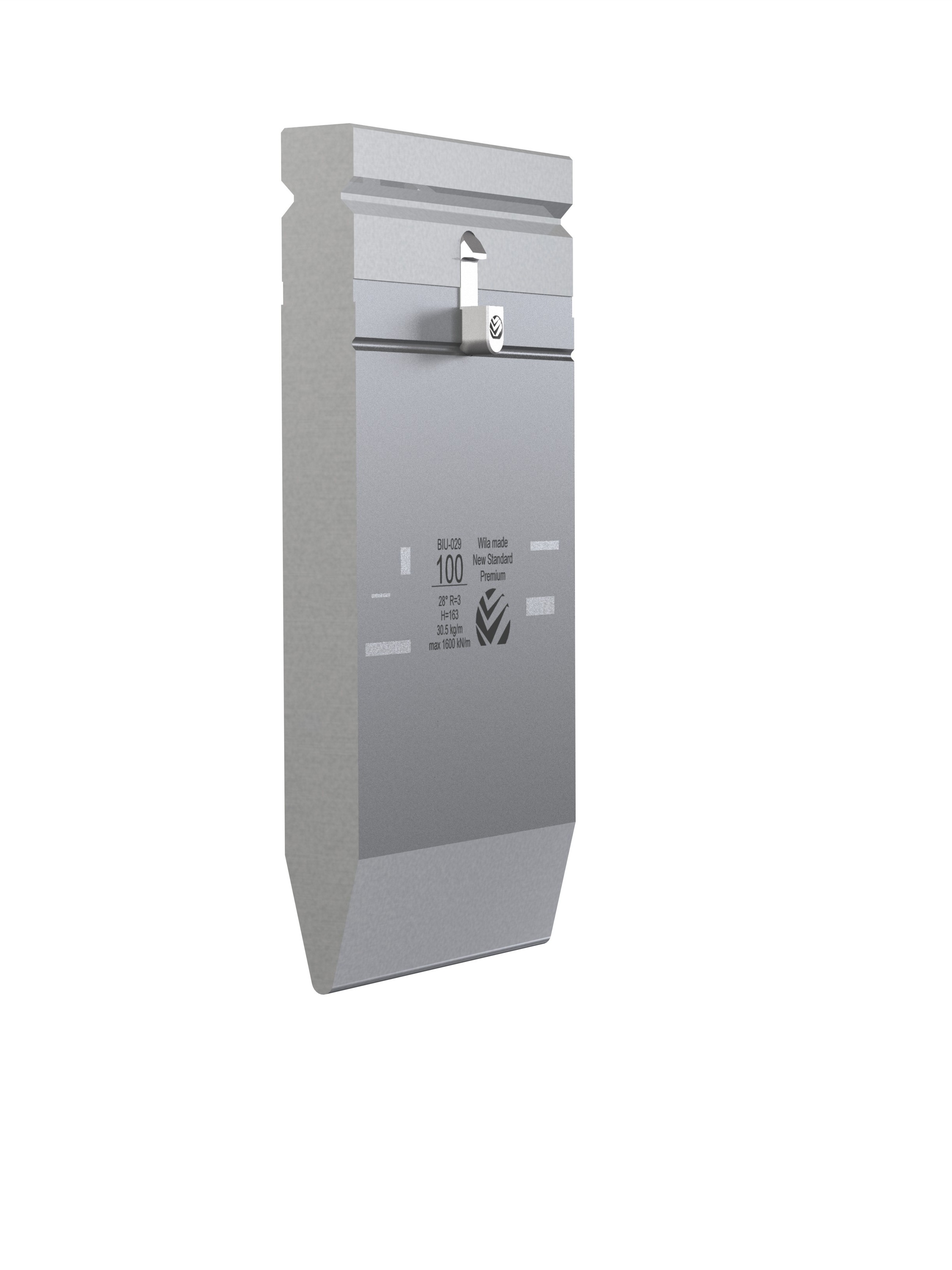 New Standard Premium Oberwerkzeug mit Arbeitshöhe=163mm, α=28°, Radius=3mm, geschliffen und CNC-Tiefgehärtet® (mindestens 4mm / 56-60HRc), Material=CR-MO, Max. Belastung=160ton/m. Teile <12.5kg versehen mit Safety-Clicks™ und deswegen vertikal zu wechseln; übrige Teile versehen mit Sicherheitsstiften und deswegen nur horizontal zu wechseln.