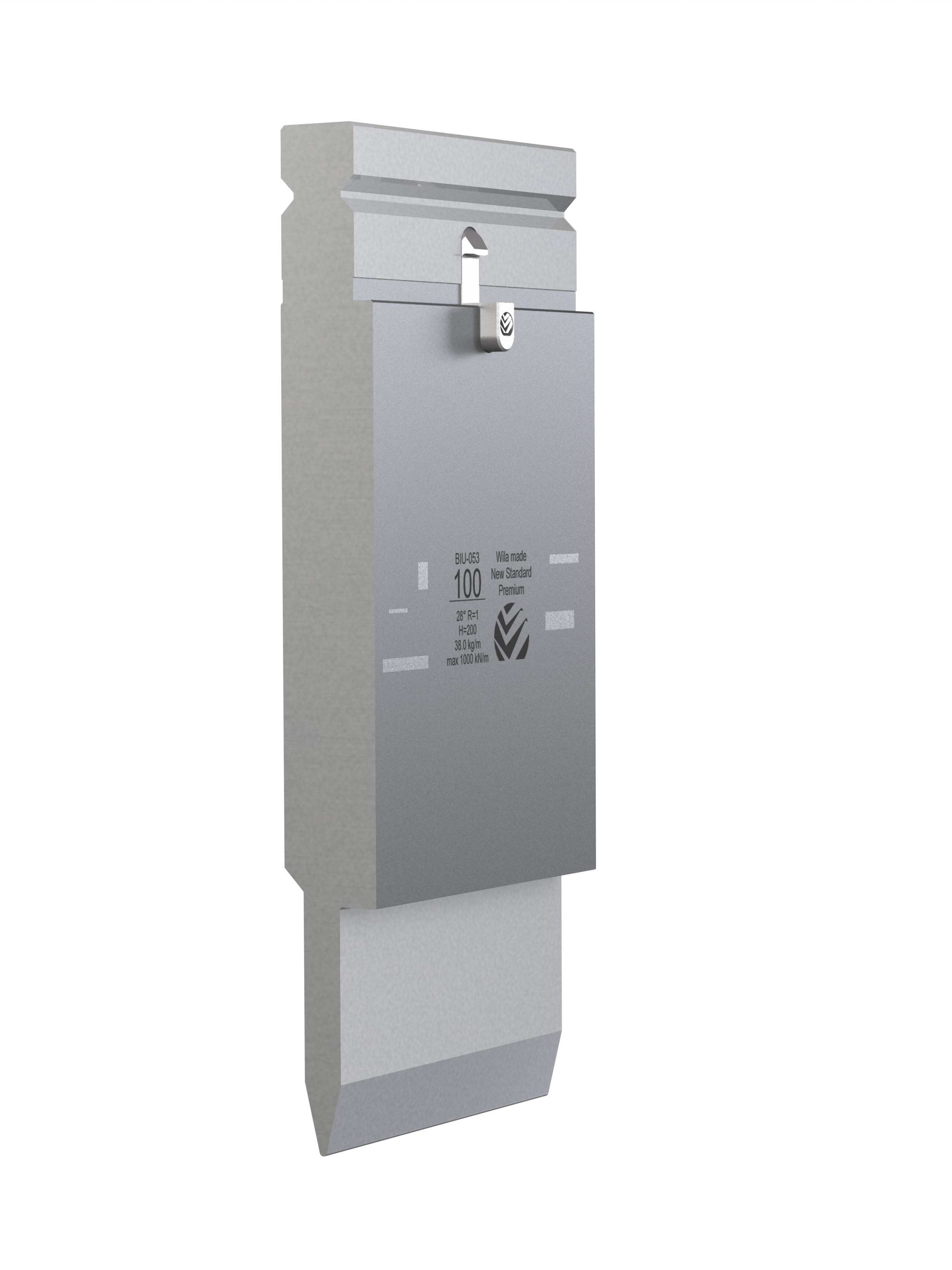 New Standard Premium Oberwerkzeug mit Arbeitshöhe=200mm, α=28°, Radius=1mm mit Zudrückfläche, geschliffen und CNC-Tiefgehärtet® (mindestens 4mm / 56-60HRc), Material=CR-MO, Max. Belastung=100ton/m. Teile <12.5kg versehen mit Safety-Clicks™ und deswegen vertikal zu wechseln; übrige Teile versehen mit Sicherheitsstiften und deswegen nur horizontal zu wechseln.