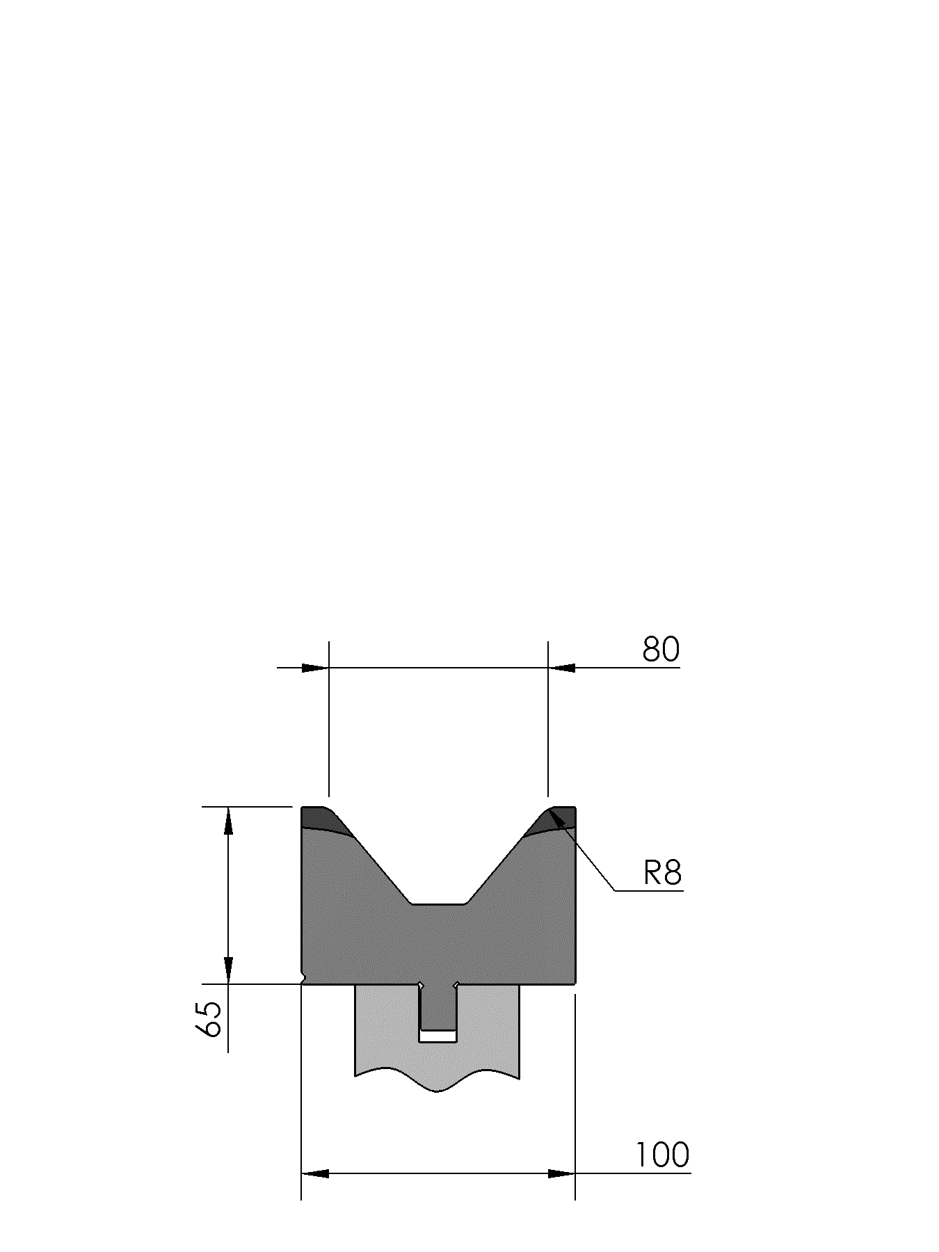 New Standard Premium Unterwerkzeug Arbeitshöhe=65mm, V-öffnung=80mm/80°, Biegeradius=8mm, geschliffen und CNC-Tiefgehärtet® (mindestens 4mm / 56-60HRc), Material=CR-MOPremium <> 'American Vintage' and Premium <> 'American Style'