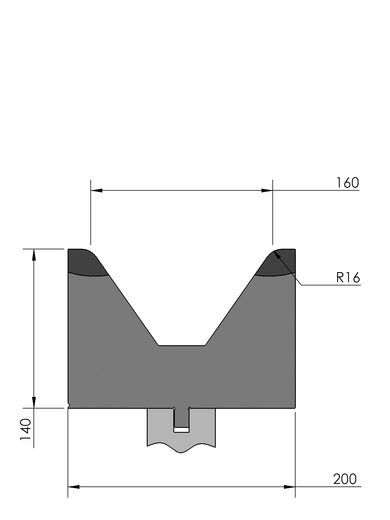 New Standard Premium Unterwerkzeug Arbeitshöhe=140mm, V-öffnung=160mm/70°, Biegeradius=16mm, geschliffen und CNC-Tiefgehärtet® (mindestens 4mm / 56-60HRc), Material=CR-MO