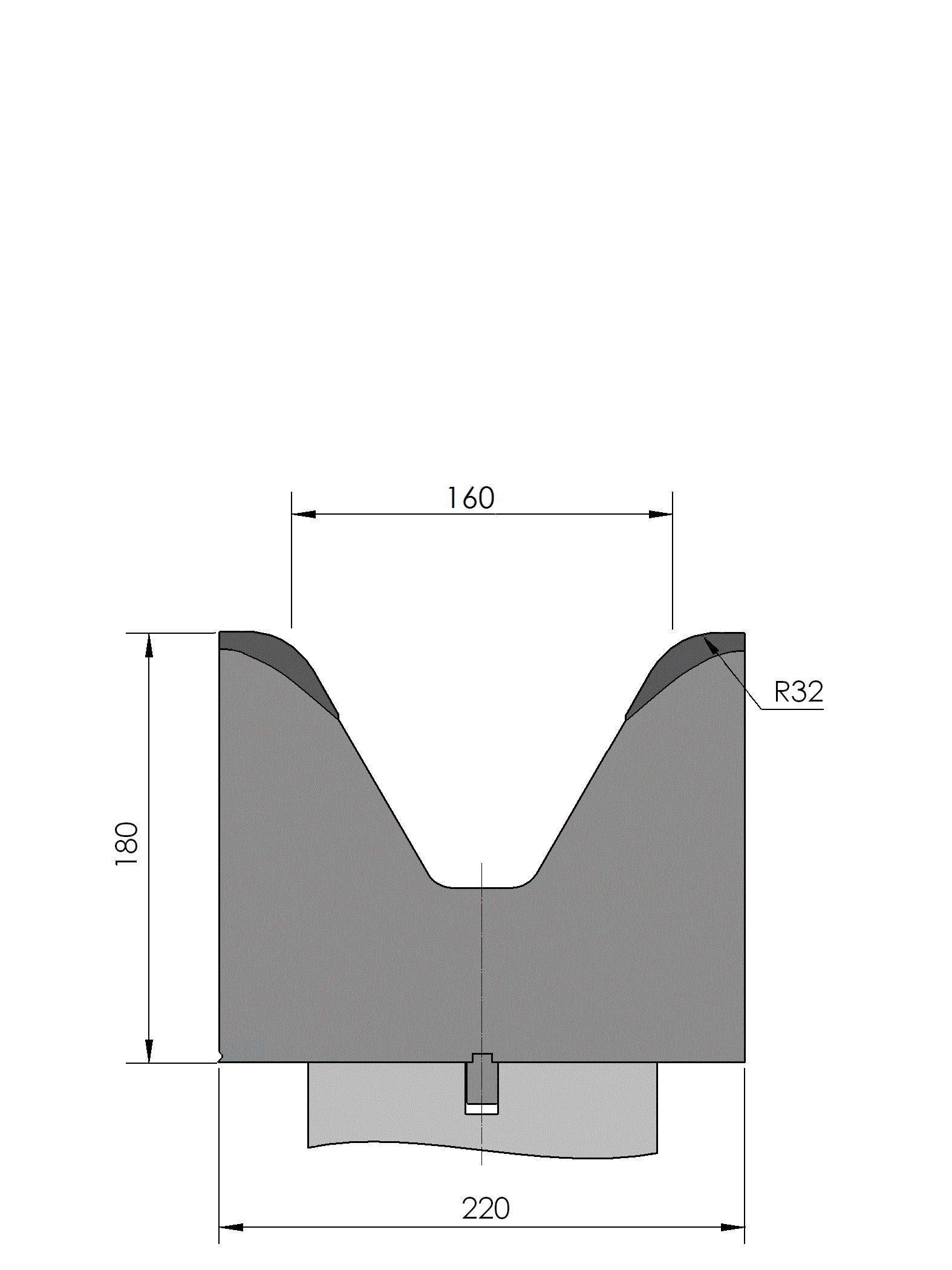 New Standard Premium Unterwerkzeug Arbeitshöhe=180mm, V-öffnung=160mm/60°, Biegeradius=32mm, geschliffen und CNC-Tiefgehärtet® (mindestens 4mm / 56-60HRc), HD <> 'American Vintage' and HD <> 'American Style'