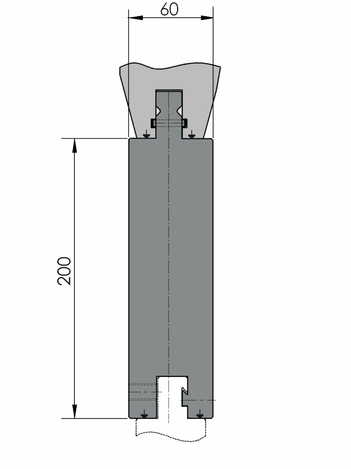 New Standard Halter für Radiuswerkzeug (RU), Arbeitshöhe=200mm (ausschließlich RU), Breite=60mm, Mataterial=CR-MO, Gewwicht=96.5kg/m, Max. Belastung=500 ton/m.