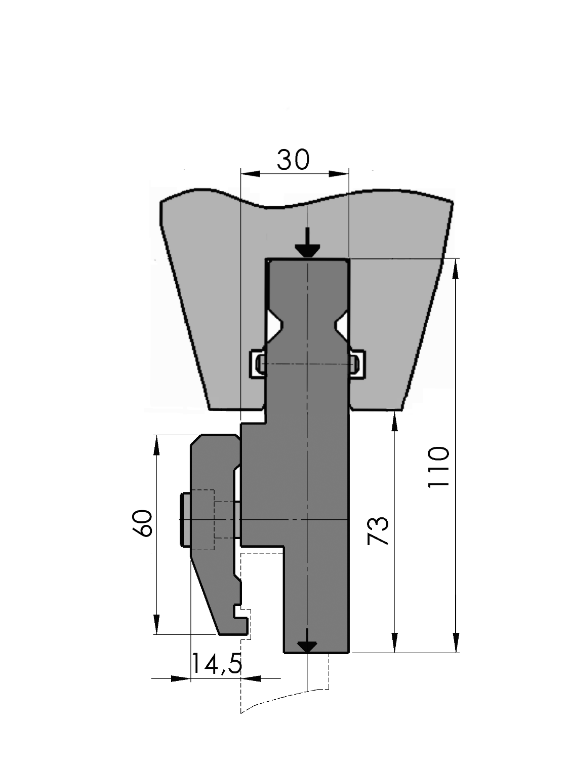 Arbeitshöhe=73mm, Breite=49.5mm, Material=C45, nicht gehärtet, Gewischt=24.35kg/m, Max. Belastung=100ton/m.