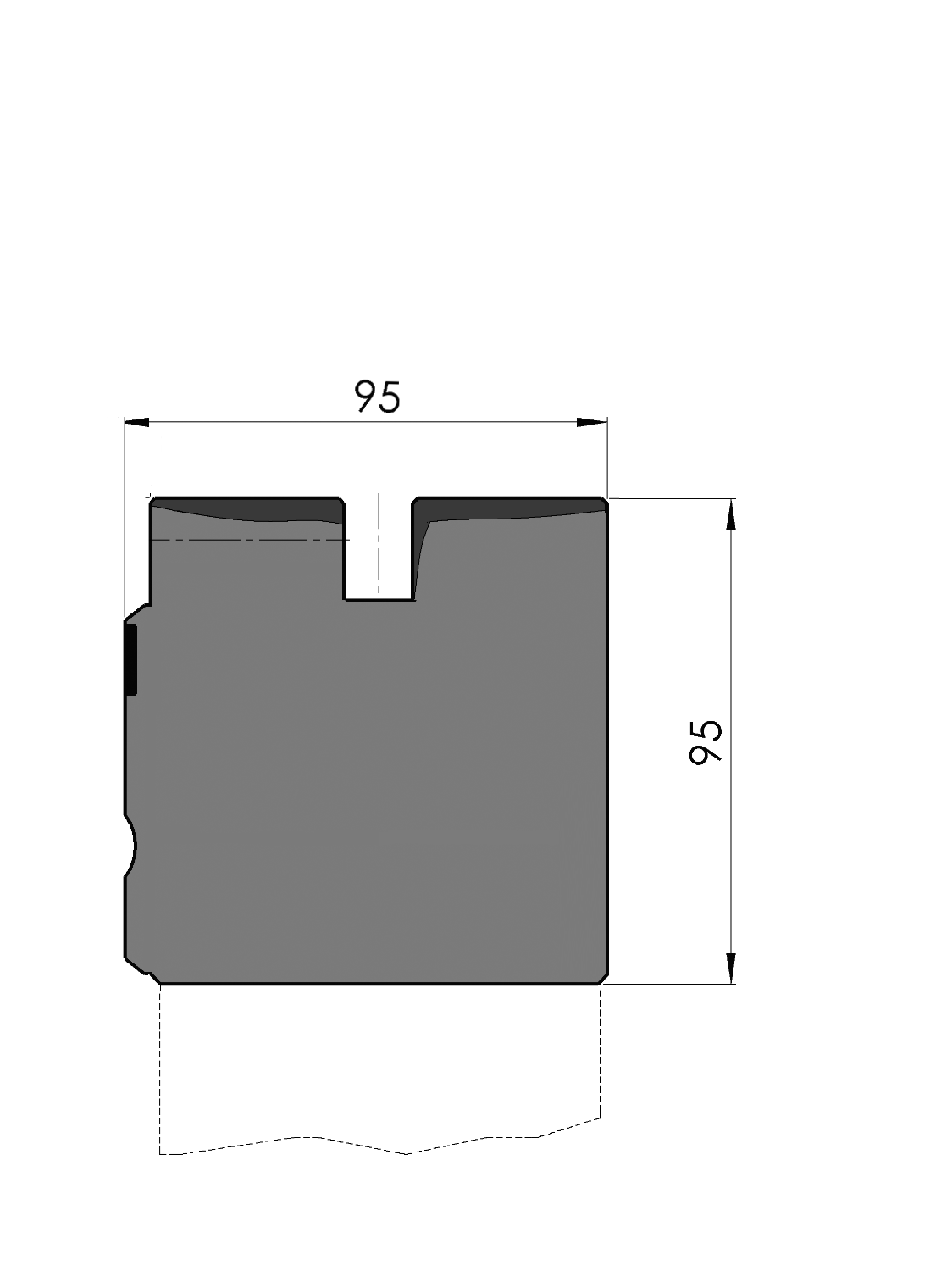 Arbeitshöhe=95mm, Breite=95mm, versehen mit UPB-Lochbild geeignet für die Befestigungslöcher gemäß Zeichnung Nr.: 31364, mechanischer Klemmung mittels Klemmschrauben M12 Stichmaß 25,5mm.