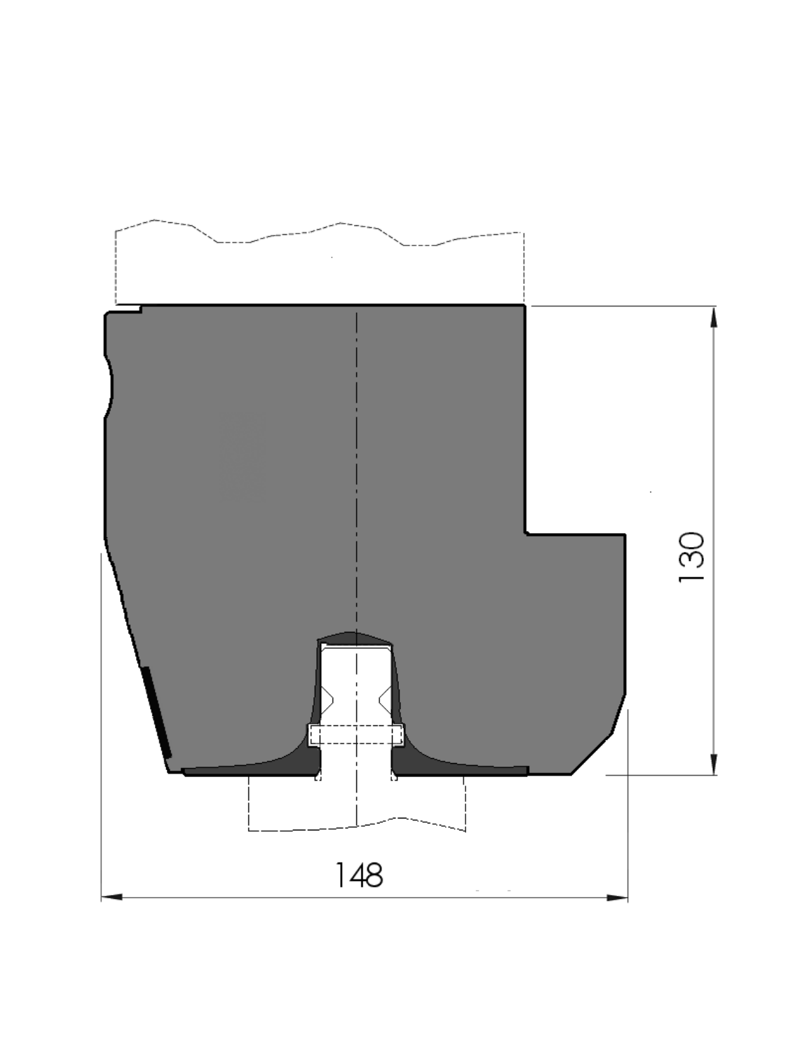 Arbeitshöhe=130mm, Breite=148mm, versehen mit UPB-Lochbild geeignet für die Befestigungslöcher gemäß Zeichnung Nr.: 0206292 und Tx-Ausrichtung, hydraulischer Klemmung (max. 50bar), Öleintritt ø10mm, links-oben, Material=CR-MO, Druck- und Anliegefläche CNC-tiefgehärtet® (2-4mm / 56-60HRc), Gewicht=114.7kg/m, Max. Belastung=800ton/m.