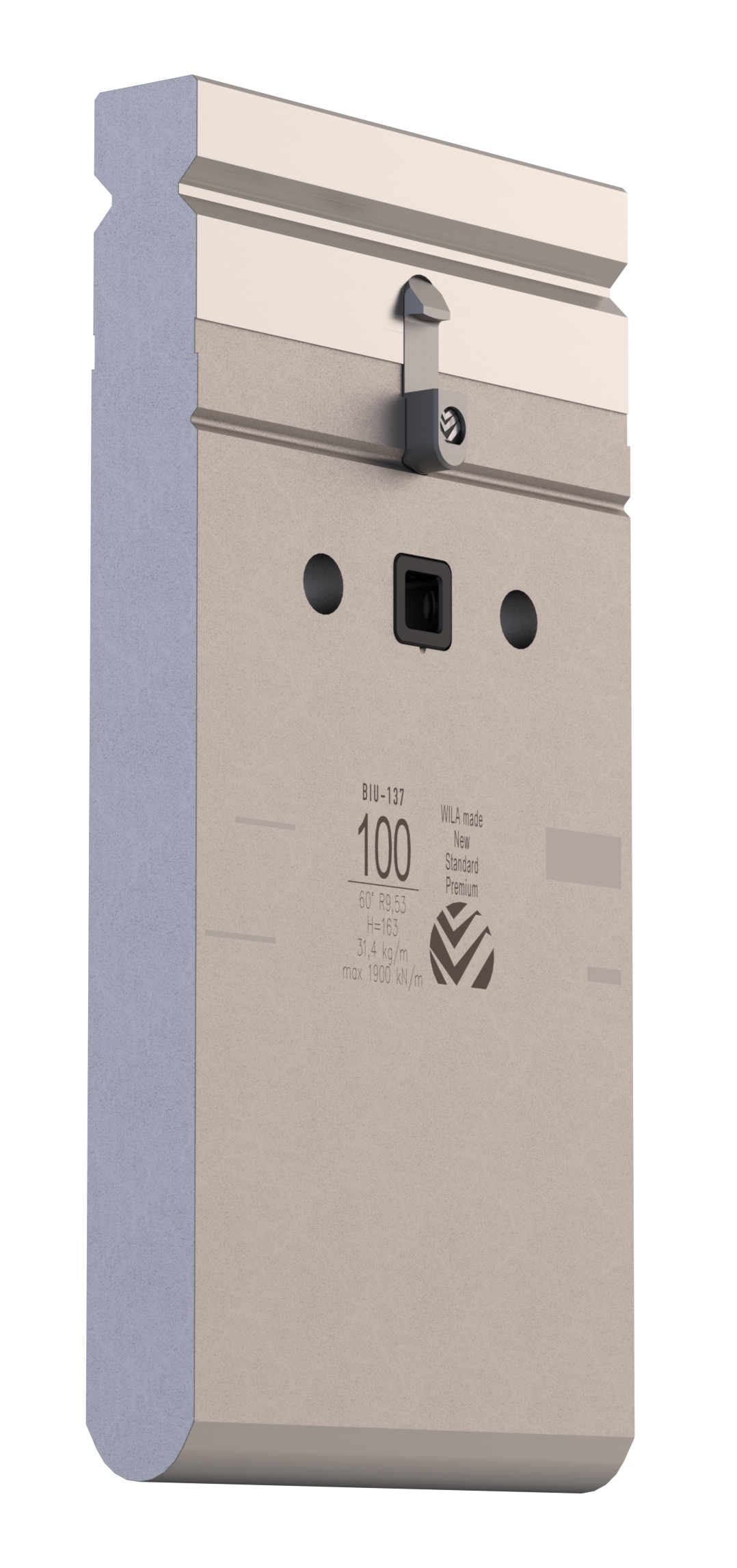 New Standard Premium Oberwerkzeug versehen mit ATC-adapter, mit Arbeitshöhe=163mm, α=60°, Radius=9.53mm CNC-Tiefgehärtet® (mindestens 4mm / 56-60HRc), Material=CR-MO, Max. Belastung=190ton/m. Teile <12.5kg versehen mit Safety-Clicks™ und deswegen vertikal zu wechseln; übrige Teile versehen mit Sicherheitsstiften und deswegen nur horizontal zu wechseln.