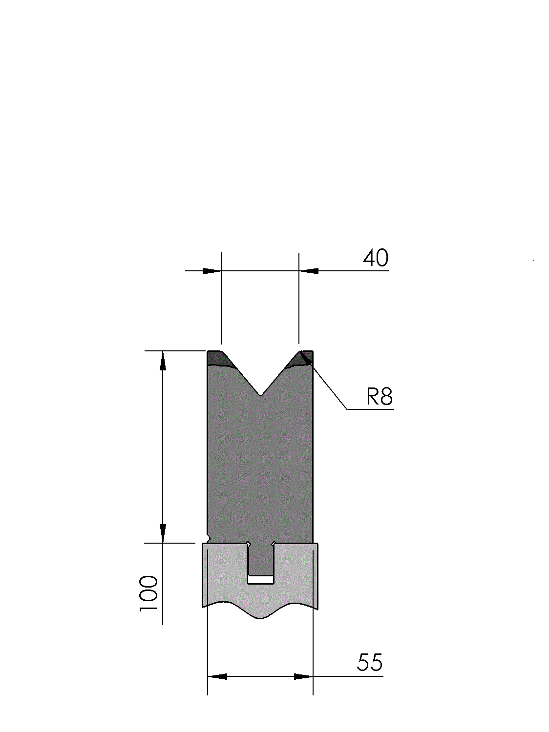 New Standard Premium Unterwerkzeug versehen mit ATC-adapter. Arbeitshöhe=100mm, V-öffnung=40mm/80°, Biegeradius=8mm CNC-Tiefgehärtet® (mindestens 4mm / 56-60HRc), Material=CR-MO