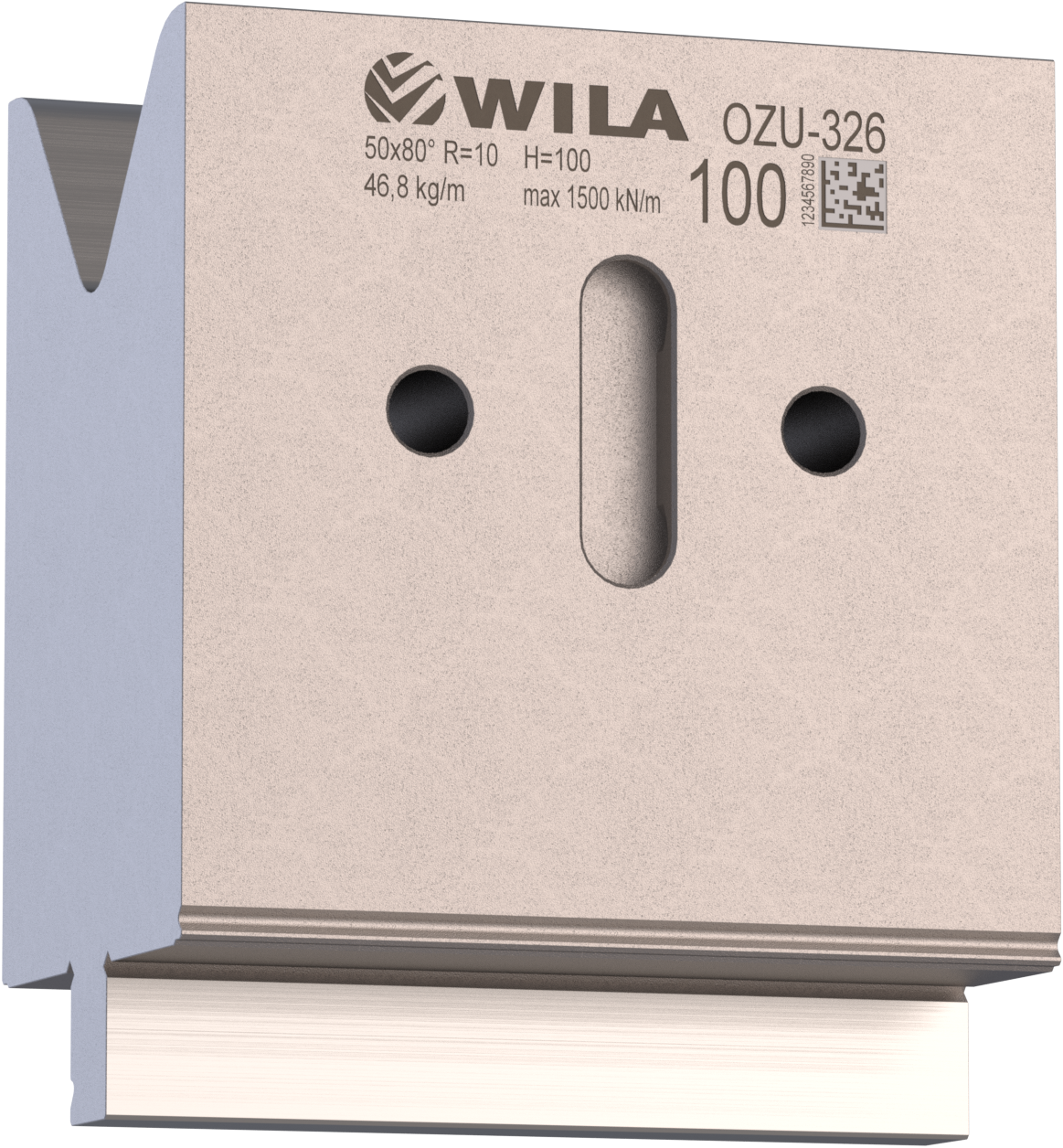 New Standard Premium Unterwerkzeug versehen mit WILA New Standard ATC, Arbeitshöhe=100mm, V-öffnung=50mm/80°, Biegeradius=10mm CNC-Tiefgehärtet® (mindestens 4mm / 56-60HRc), Material=CR-MO