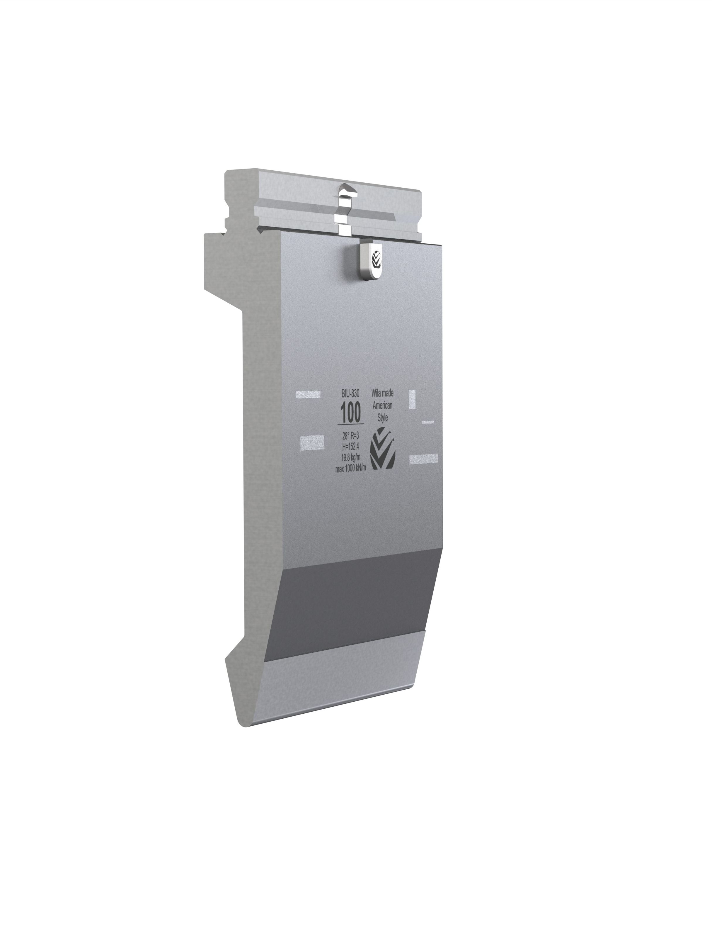 American Style top tool with Working height H=152.4mm, α=28°, Radius=3mm, precision ground and CNC-Deephardened® (at least 4mm / 52-60HRc), Material=CR-MO, Max. load=100ton/m. Provided with Safety-Clicks™, which allows you to change the tooling vertically.
