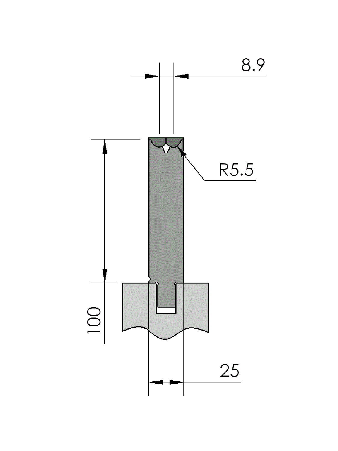 Easily bend short flanges and reduce part marking on the sheet / the product. New Standard RotaBend bottom tool Working height=100mm, Wing rotor opening=8.9mm, Minimum bend angle=40°, precision ground and CNC-hardened