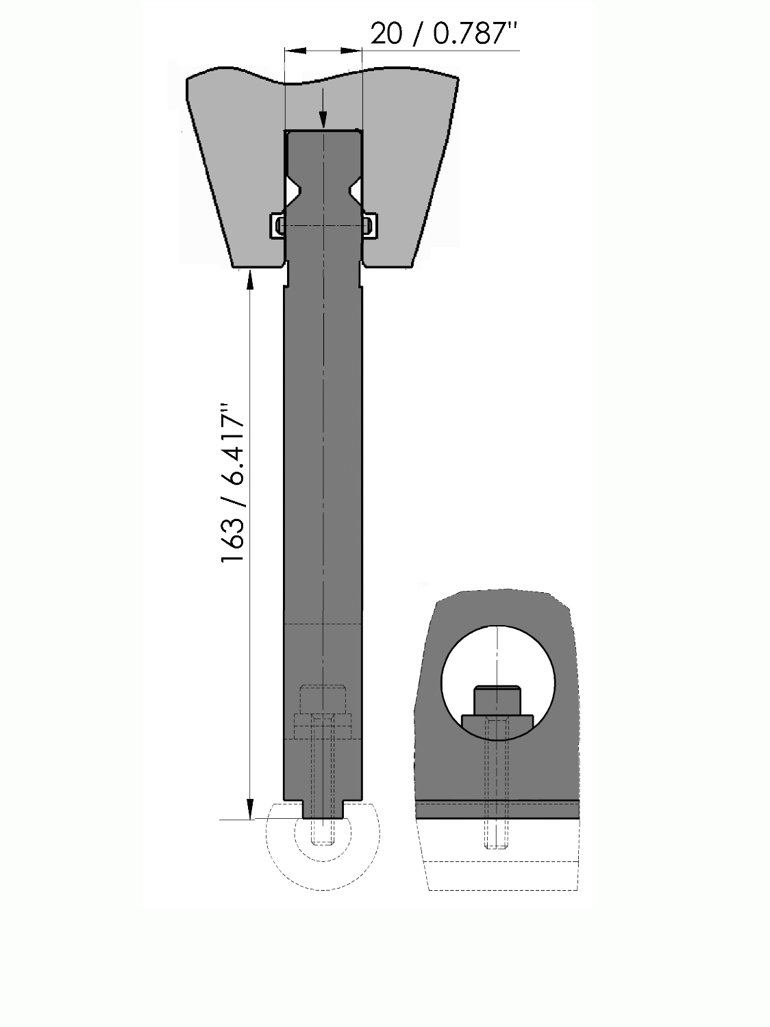 New Standard holder suitable for radius tools (RU), Working height=163mm (excl. RU), Width=20mm,Material=C45, Weight=31.1kg/m, Max. load=160 ton/m.