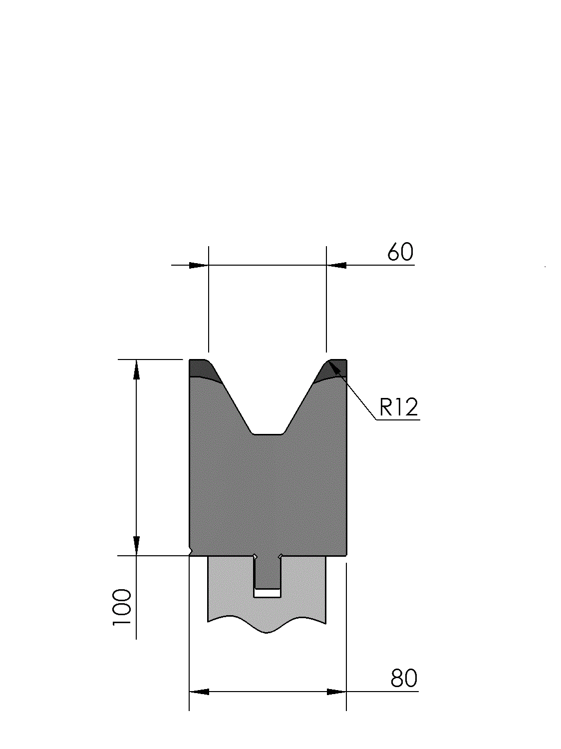 New Standard Premium bottom tool provided with WILA New Standard ATC, Working height=100mm, V-opening=30mm/40°, Bending radius=6mm CNC-Deephardened® (at least 4mm / 56-60HRc), Material=CR-MO