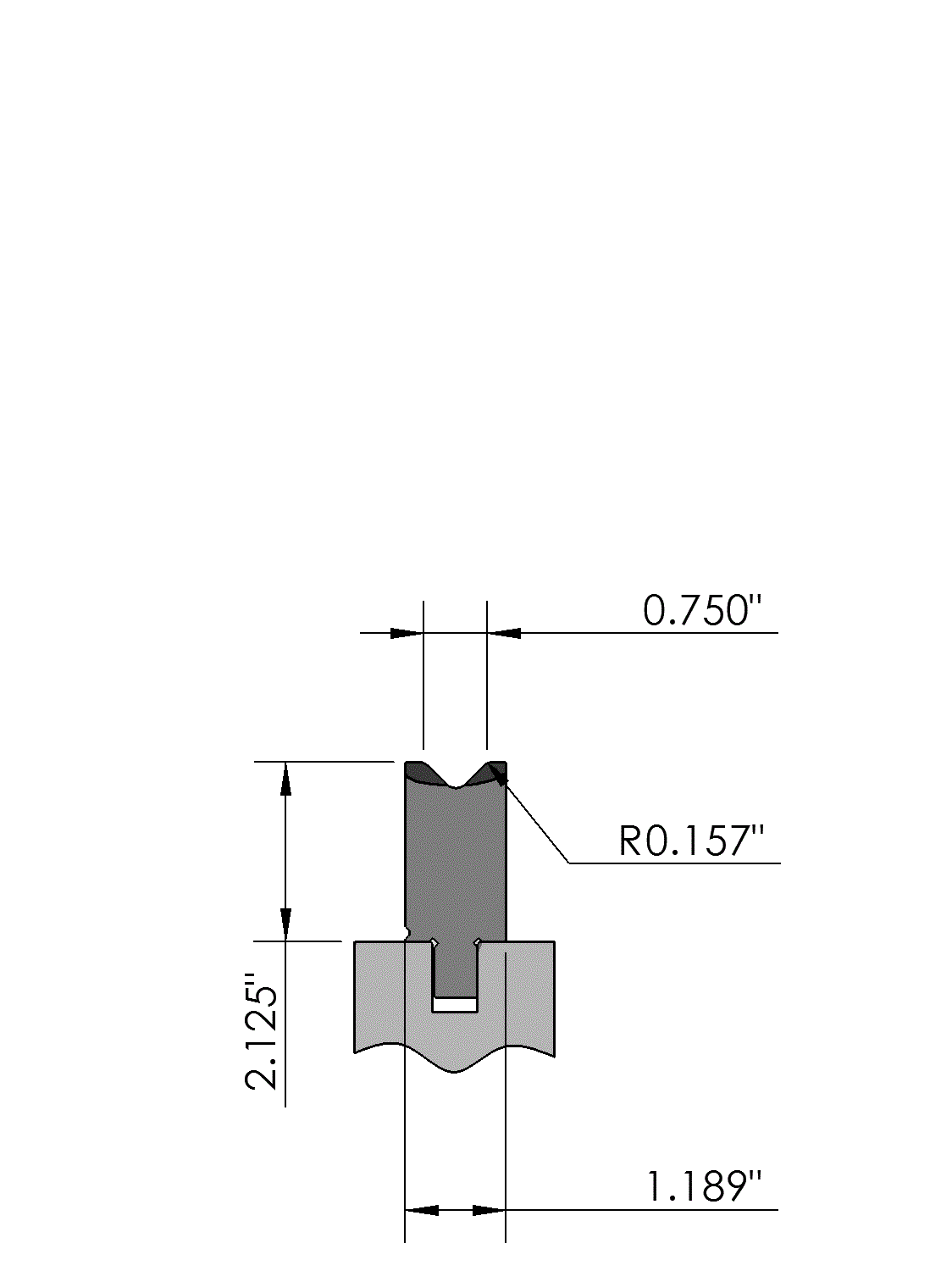 American Vintage bottom tool Working heigth=2.125", V-opening=0.750"/90°, Bending radius=.157", precision ground and CNC-hardened (approx. 0.079" / at least 52HRc) (approx. 2mm / at least 52HRc), Material=C45.