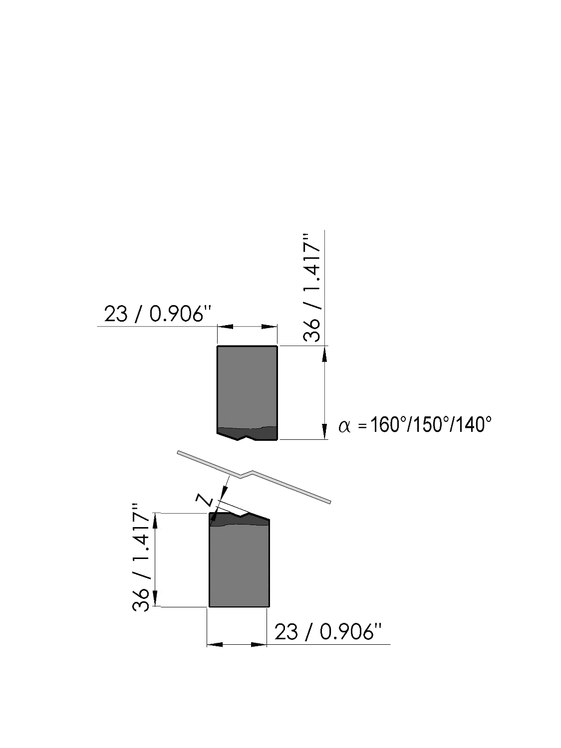 set of 2 parts, Width=23mm, Z=2.50mm/140°, CNC-Deephardened® (at least 4mm / 56-60HRc), Material=C45, Weight=12.58kg/m, Max. load=100ton/m.