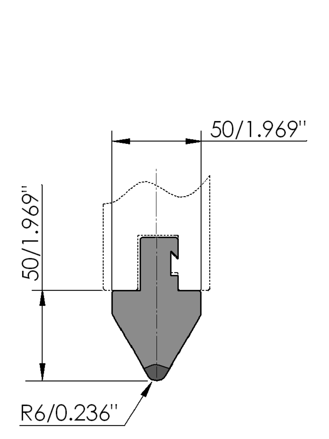 Working height=50mm, Width=50mm, Radius=6mm, CNC-Deephardened® (at least 4mm / 56-60HRc), Material=CR-MO, Weight=17.5kg/m, Max. load=160ton/m.
