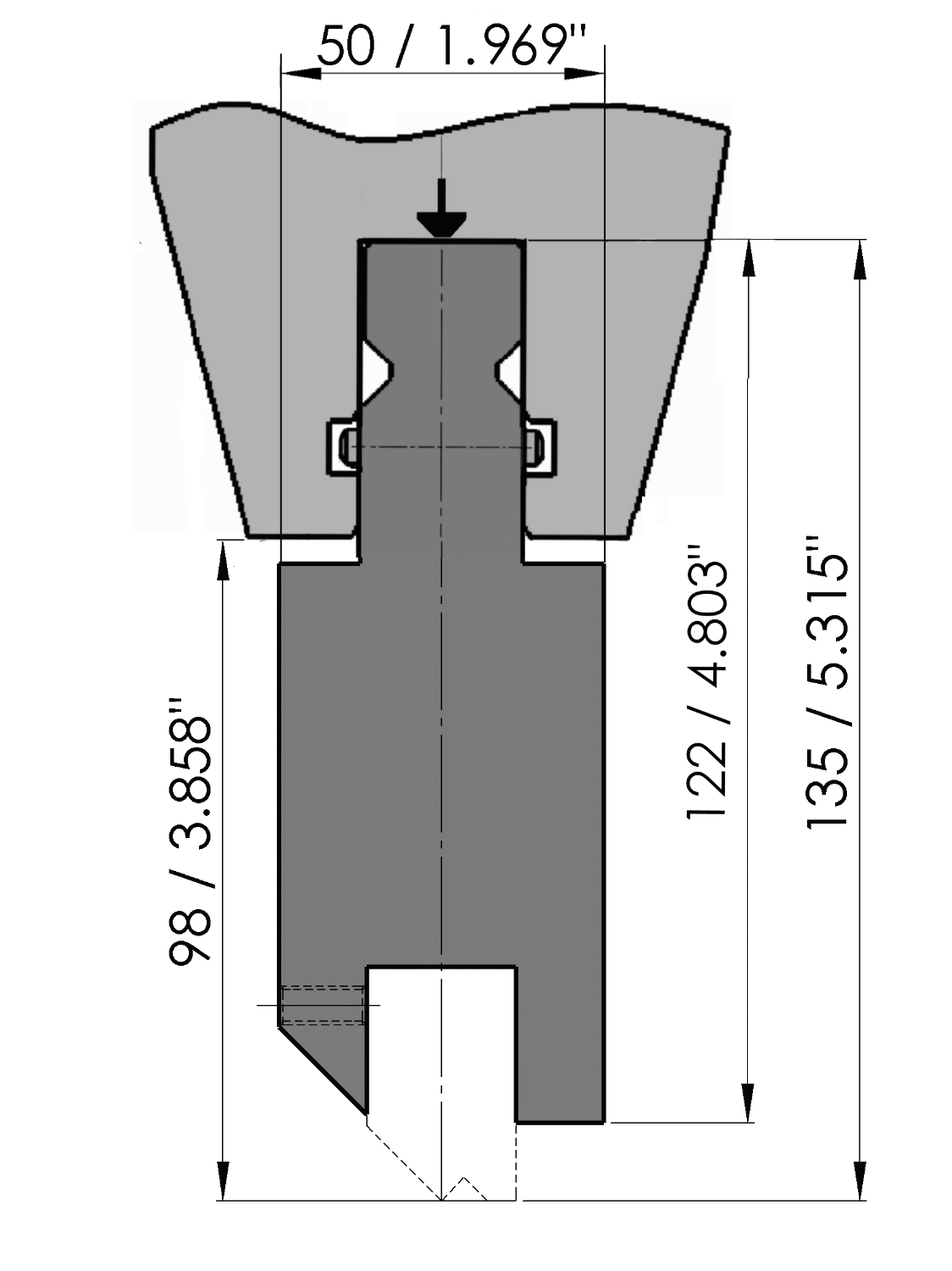New Standard holder suitable for inserts (INZU), Working height=98mm (incl. INZU), Width=50mm,Material=C45, Weight=32.9kg/m, Max. load=100 ton/m.