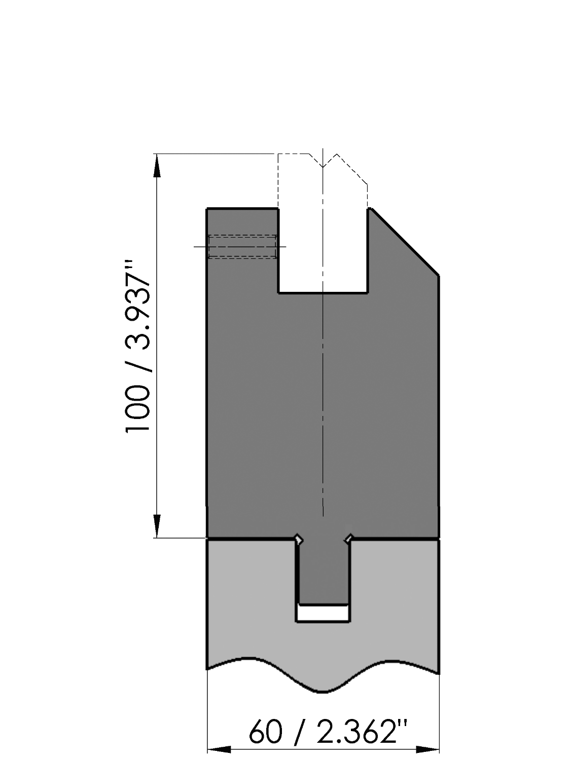 New Standard holder suitable for inserts (INZU), Working height=100mm (incl. INZU), Width=60mm,Material=C45, Weight=36.9kg/m, Max. load=100 ton/m.