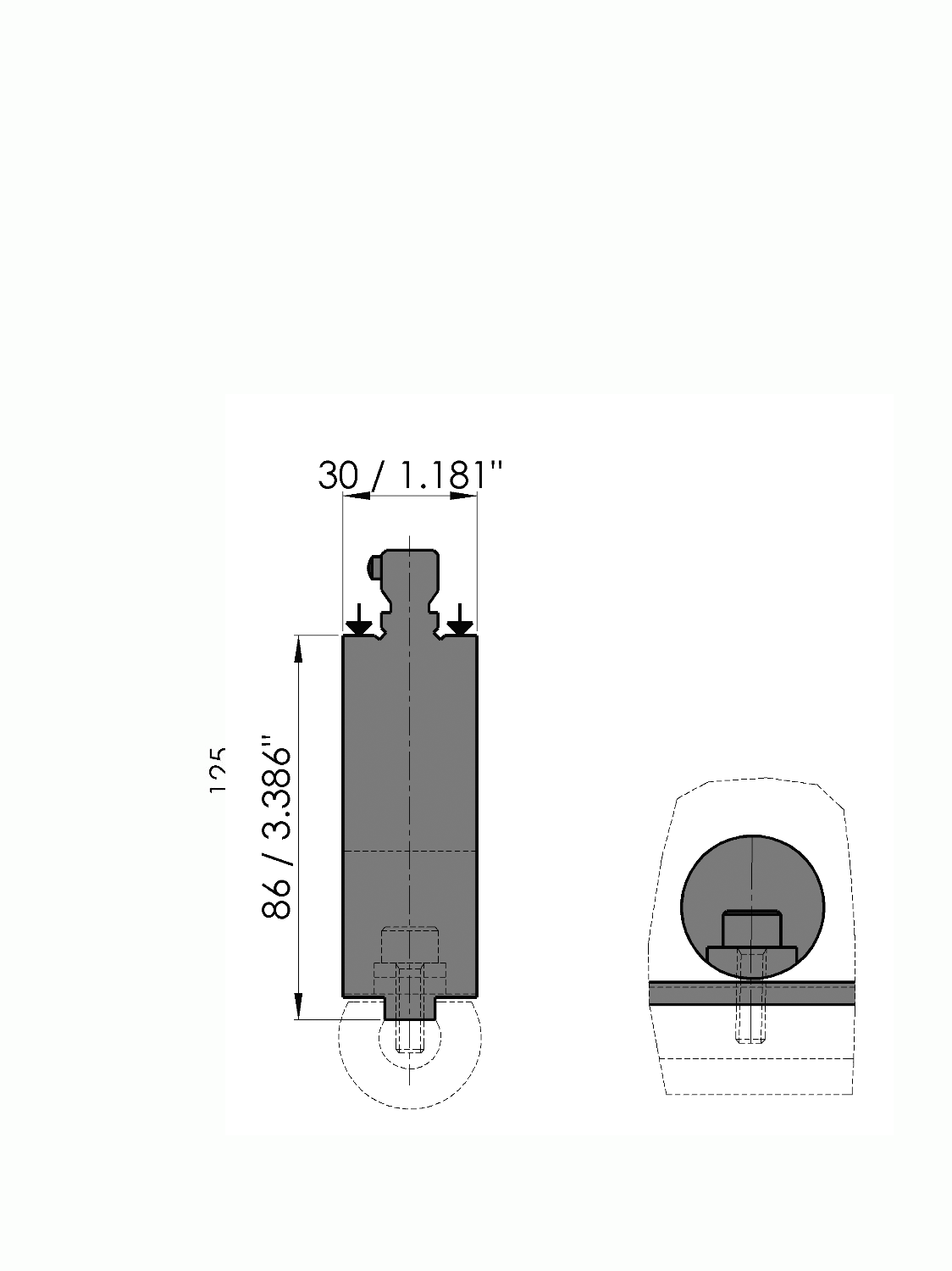 American Style holder suitable for radius tools (RU), Working height=86mm (excl. RU), Width=32mm,Material=C45, Weight=20.4kg/m, Max. load=160 ton/m.