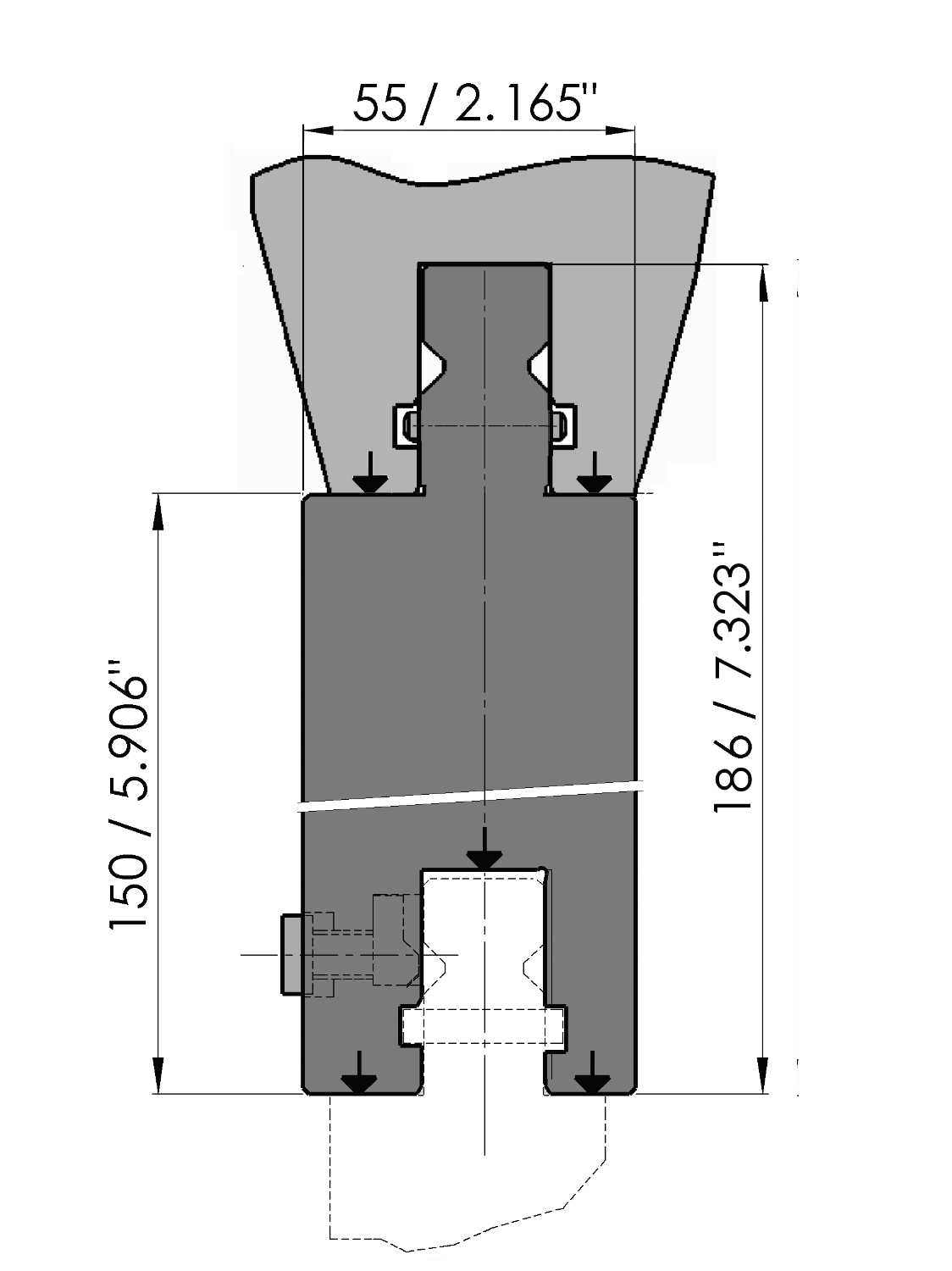 Working height=150mm, Width=55mm, Material=C45, not hardened, Max. load=180ton/m.