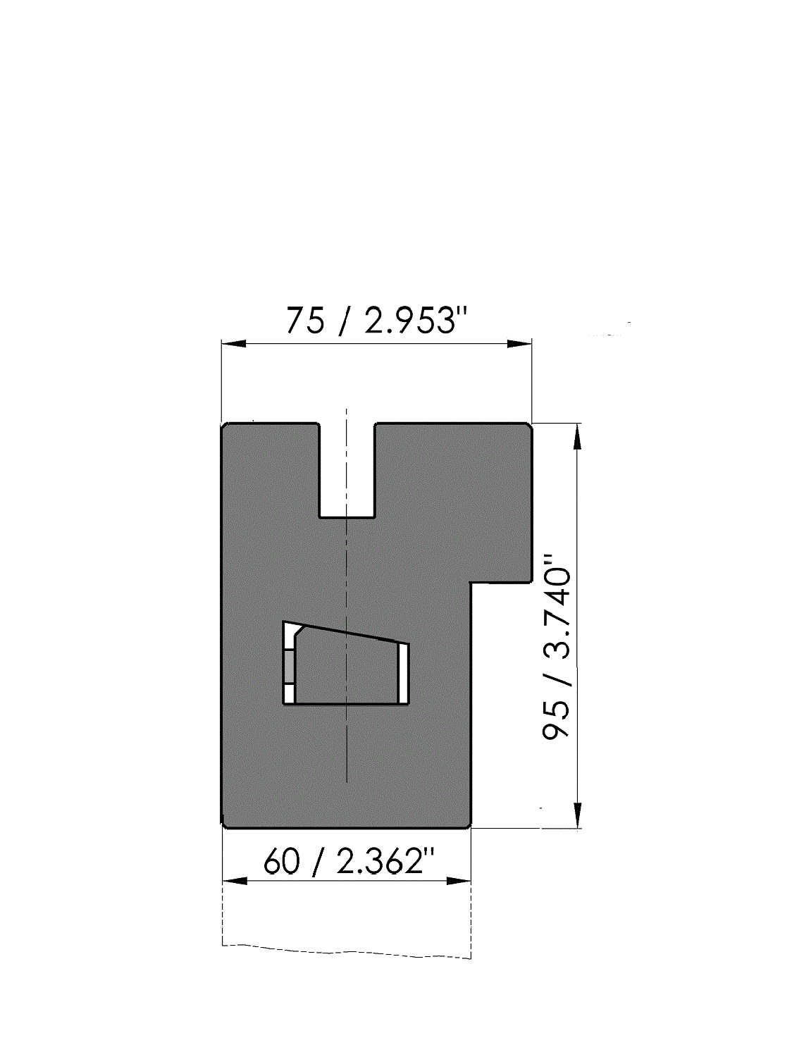 Working height=95mm, Width=75mm, provided with UPB-hole pattern which is suitable for the fixing holes according to drawing no.: 31364, hydraulic clamping (max. 50bar), oil supply ø10mm, left-end, Tx-alignment, Ty-alignment (manually by means of single point adjustment), Material=C45 not hardened.