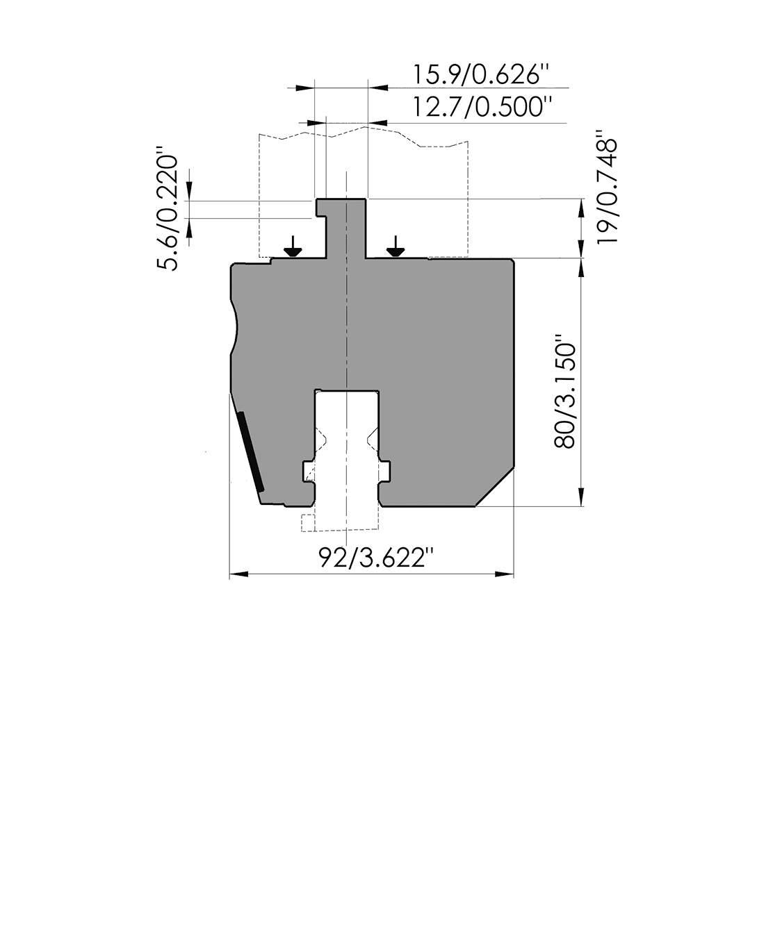 Working height=80mm, Width=92mm, provided with American Style adaptation, pneumatic clamping, left and right rear, Material=C45 not hardened, Max. load=180ton/m.