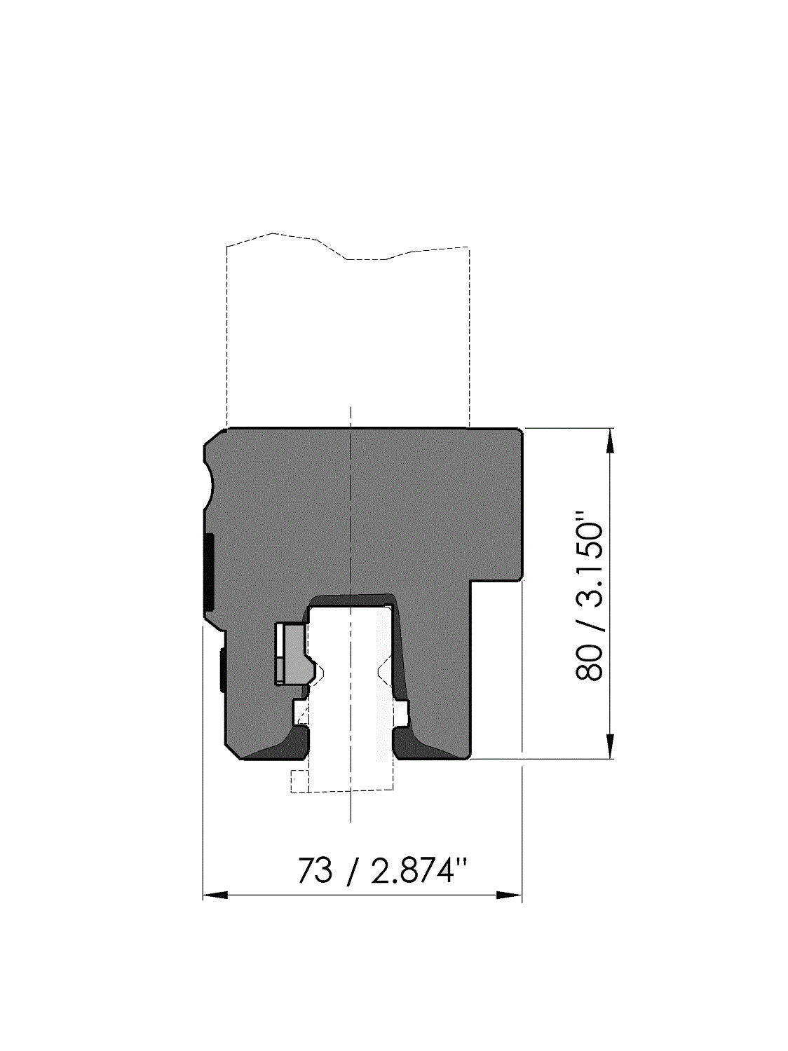 Working height=80mm, Width=73.3mm, provided with UPB-hole pattern which is suitable for the fixing holes according to drawing no.: 31364 with Tx-alignment, mechanical clamping by means of clamping bars, Material=CR-MO, pressure and reference surfaces CNC-Deephardened® (2-4mm / 56-60HRc).