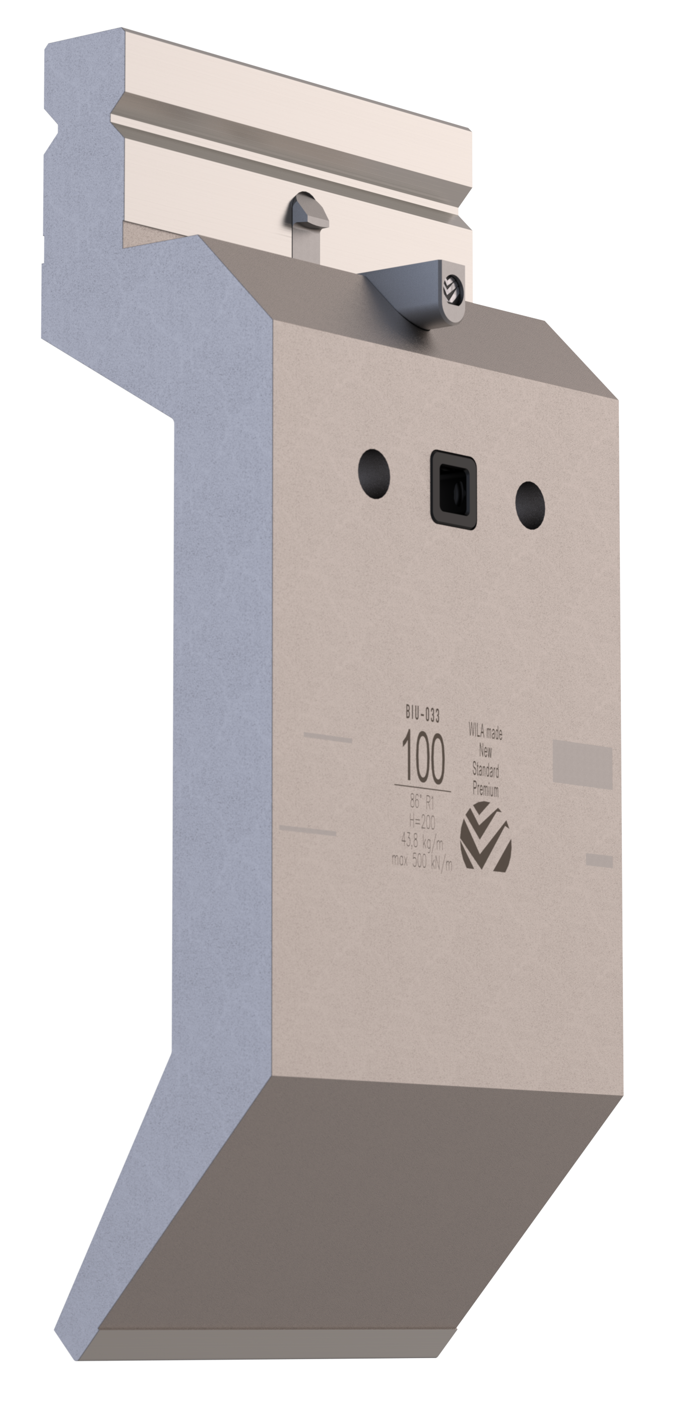 New Standard Premium top tool provided with ATC-adapter, with Working height H=200mm, α=86°, Radius=1mm CNC-Deephardened® (at least 4mm / 56-60HRc), Material=CR-MO, Max. load=50ton/m. Parts <12.5kg provided with Safety-Clicks™, which allows you to change the tooling vertically; all other parts provided with fixed safety pins, which only allows you to change the tooling horizontally.