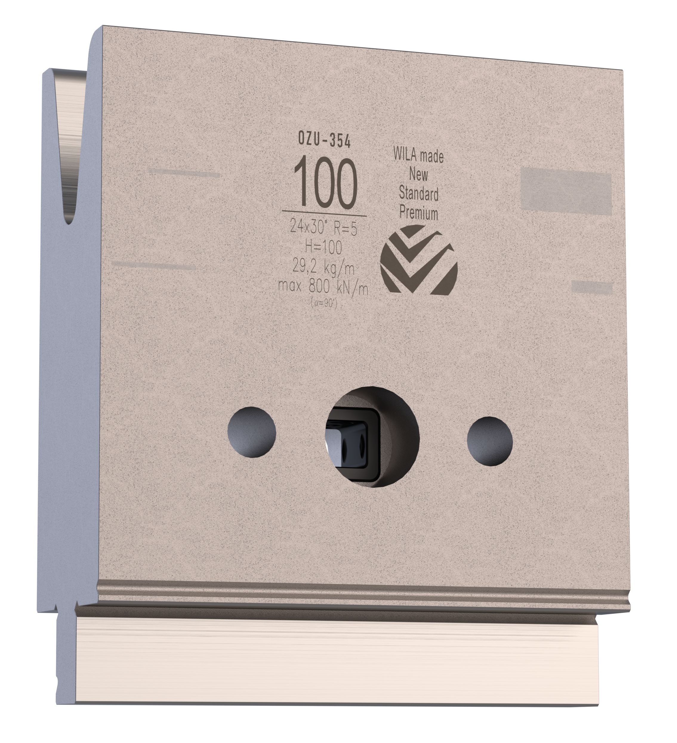 New Standard Premium bottom tool provided with ATC-adapter. Working height=100mm, V-opening=24mm/30°, Bending radius=5mm CNC-Deephardened® (at least 4mm / 56-60HRc), Material=CR-MO