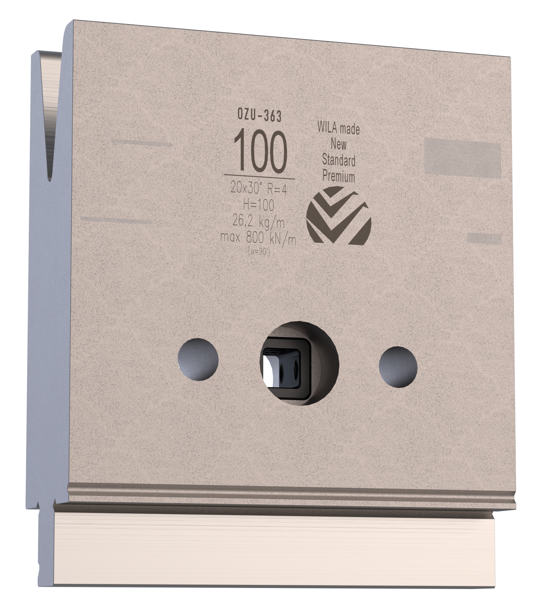 New Standard Premium bottom tool provided with ATC-adapter. Working height=100mm, V-opening=20mm/30°, Bending radius=4mm CNC-Deephardened® (at least 4mm / 56-60HRc), Material=CR-MO