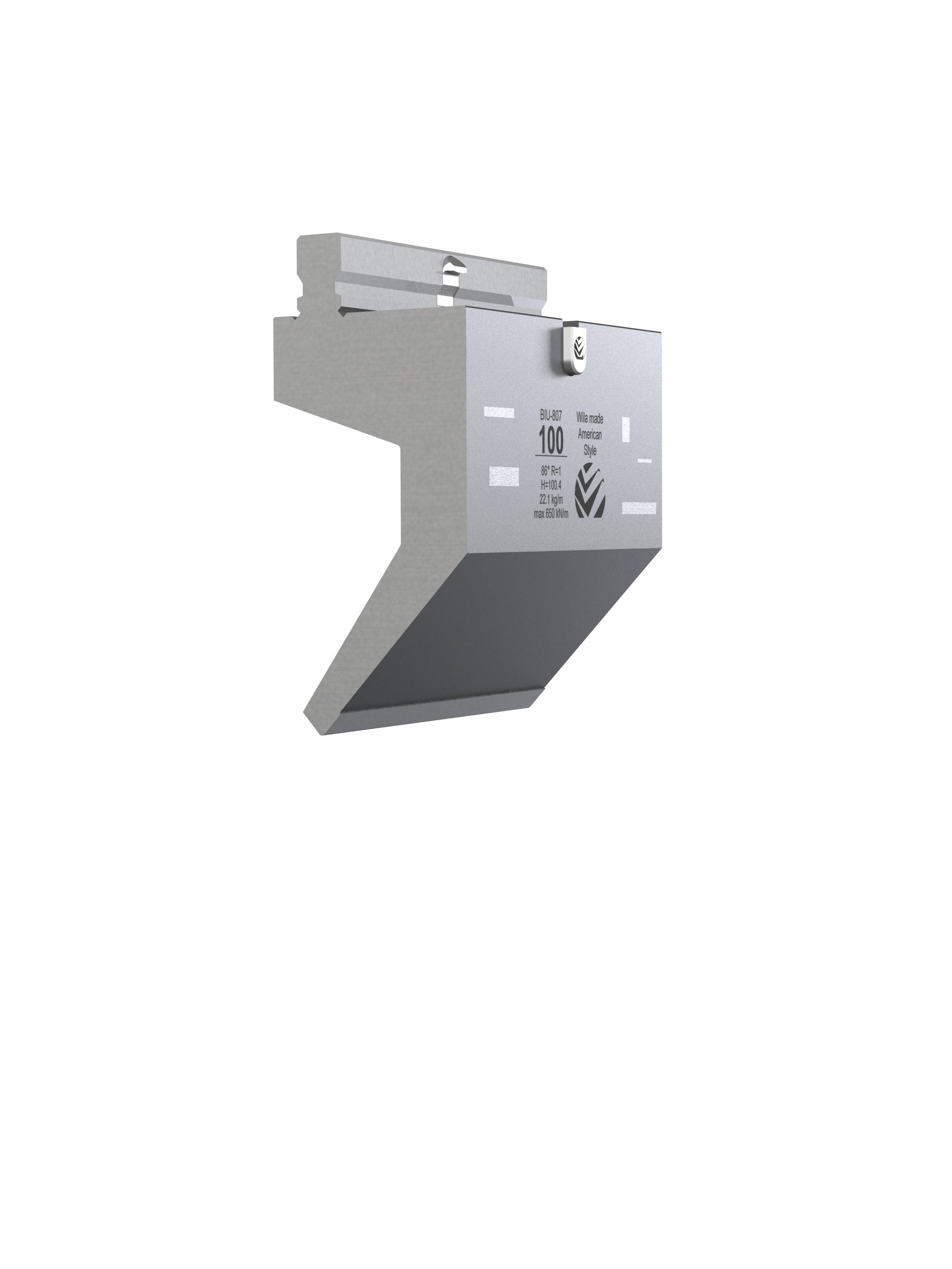 American Style bovengereedschap met Werkhoogte=100.4mm, α=86°, Radius=1mm, geslepen en CNC-diepgehard® (minimaal 4mm / 52-60HRc), Materiaal=CR-MO, Max. belasting=65ton/m. Voorzien van Safety-Clicks®, waardoor de gereedschappen snel, makkelijk en veilig verticaal te wisselen zijn.