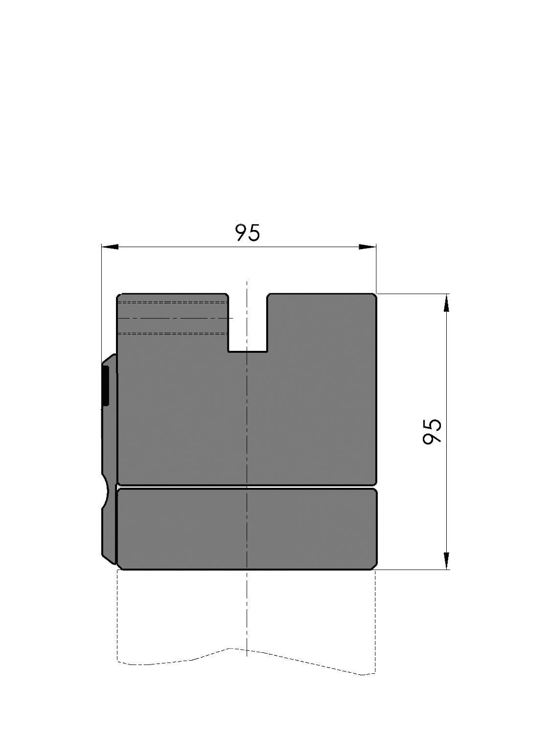 New Standard Pro bombeersysteem Werkhoogte=95mm, Breedte=95mm, voorzien van UPB-gatenpatroon dat geschikt is voor de bevestigingsgaten volgens tekeningnr.: 31364, mechanische klemming d.m.v. klembouten M12 h.o.h. 102mm met middelste 1000mm h.o.h. 25.50mm.