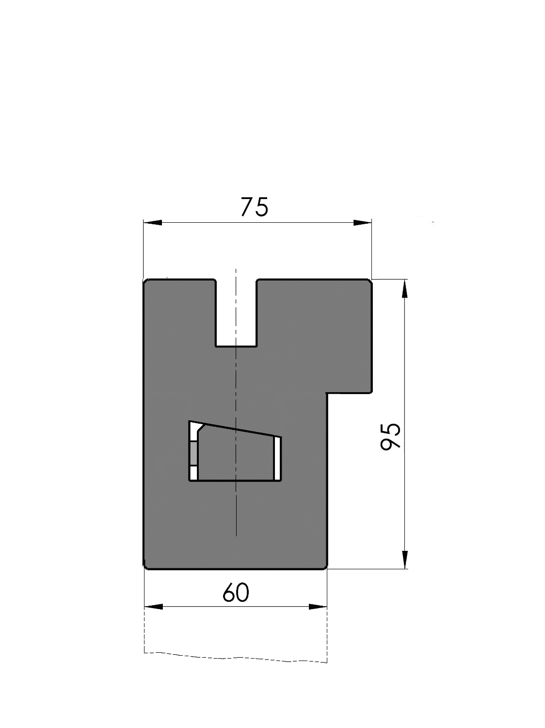 New Standard Pro Custom Style opspanbak Werkhoogte=95mm, Breedte=75mm, voorzien van UPB-gatenpatroon dat geschikt is voor de bevestigingsgaten volgens tekeningnr.: 31364, hydraulische klemming (max. 50bar), olietoevoer ø10mm, links-kopzijde, Tx-uitlijning, Ty-uitlijning (handmatig d.m.v. één-punts-verstelling), Materiaal=C45 ongehard, Gewicht=39.3kg/m, Max. belasting=200ton/m.