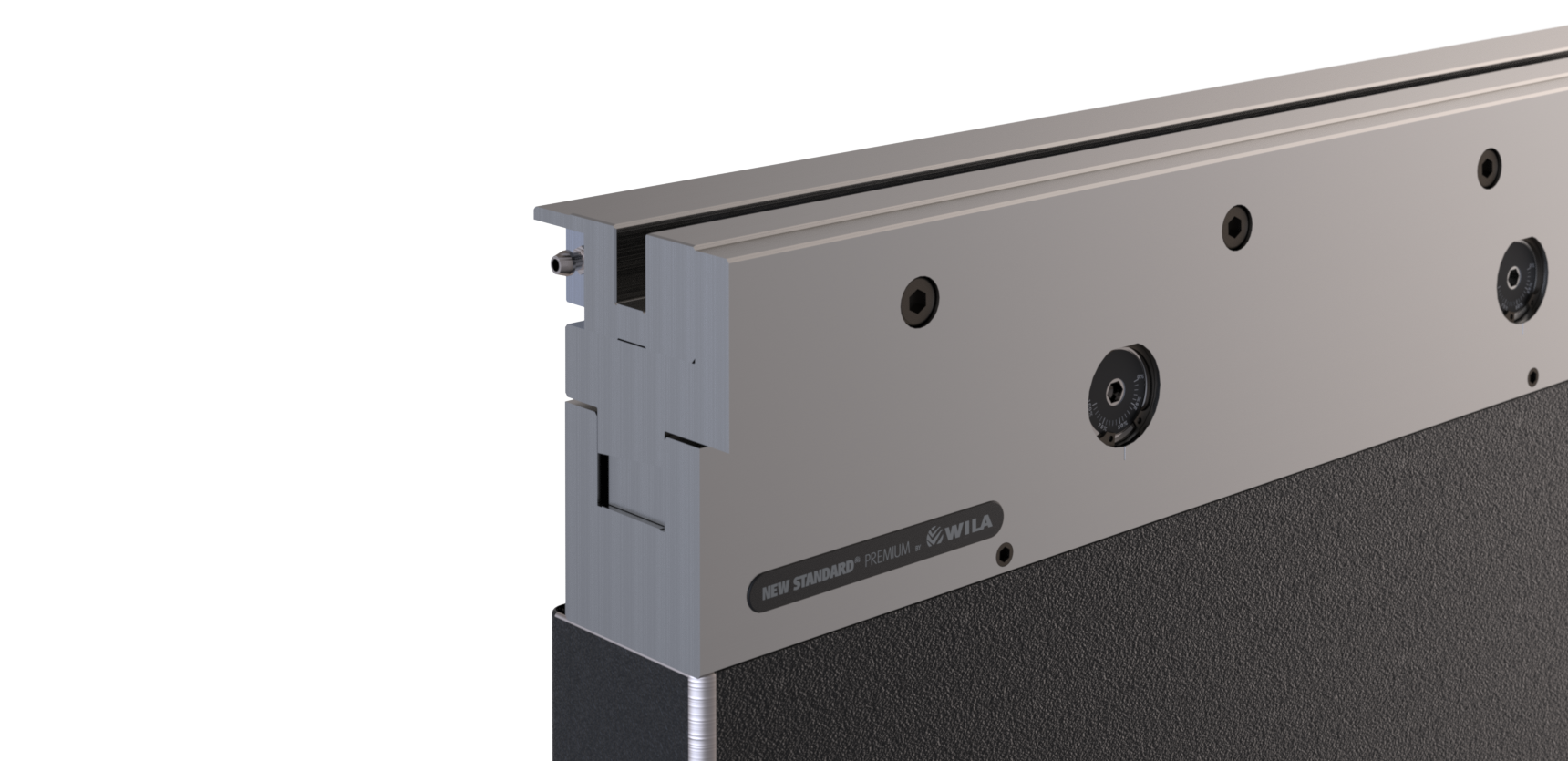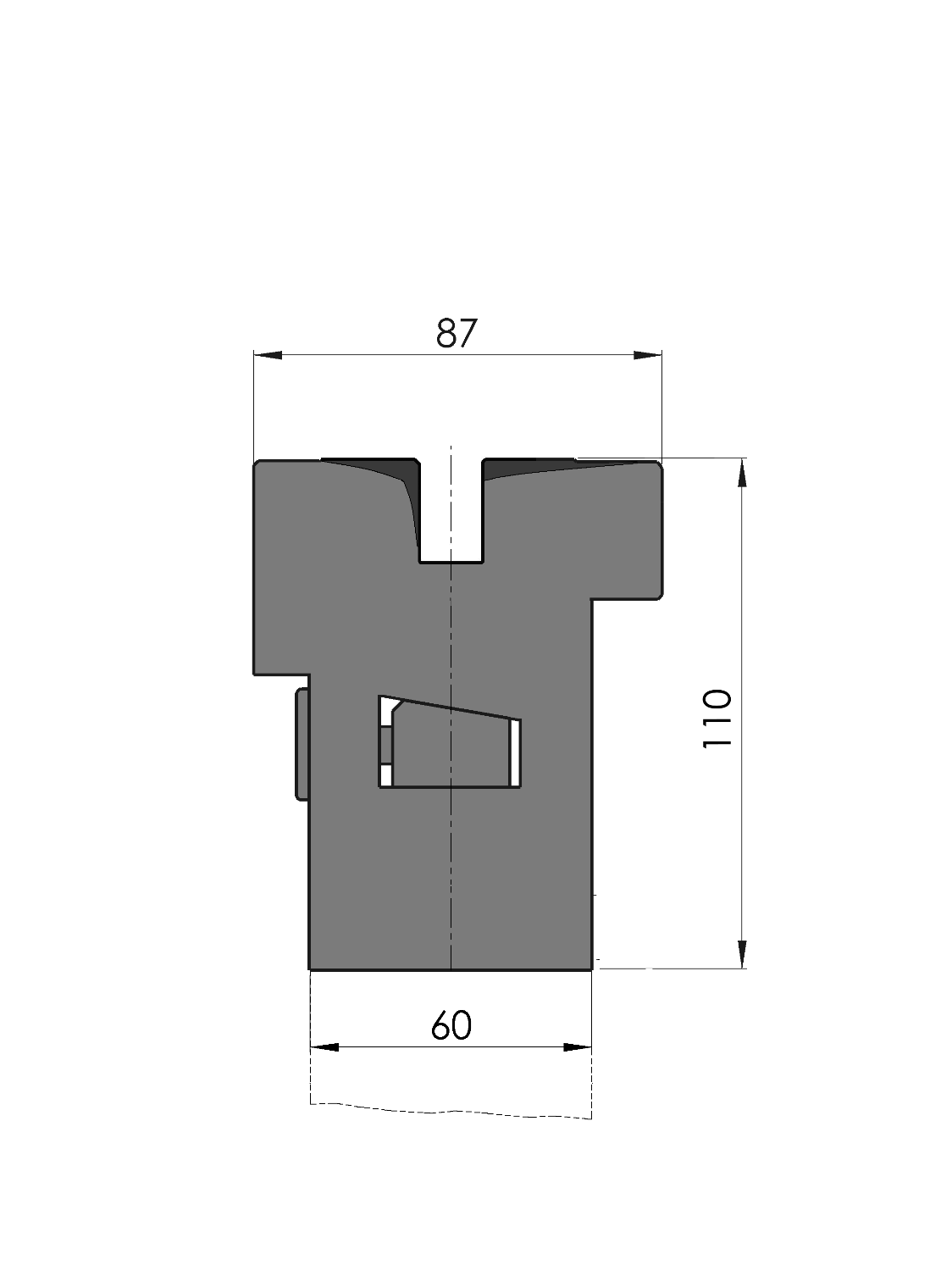 New Standard Premium Custom Style opspanbak Werkhoogte=110mm, Breedte=87mm, voorzien van UPB-gatenpatroon dat geschikt is voor de bevestigingsgaten volgens tekeningnr.: 31364, hydraulische klemming (max. 50bar), olietoevoer ø10mm, links-kopzijde, Tx-uitlijning, Ty-uitlijning (handmatig d.m.v. één-punts-verstelling), Materiaal=CR-MO, druk- en aanlegvlakken CNC-diepgehard® (2-4mm / 56-60HRc), Gewicht=53.1kg/m, Max. belasting=300ton/m.geharde