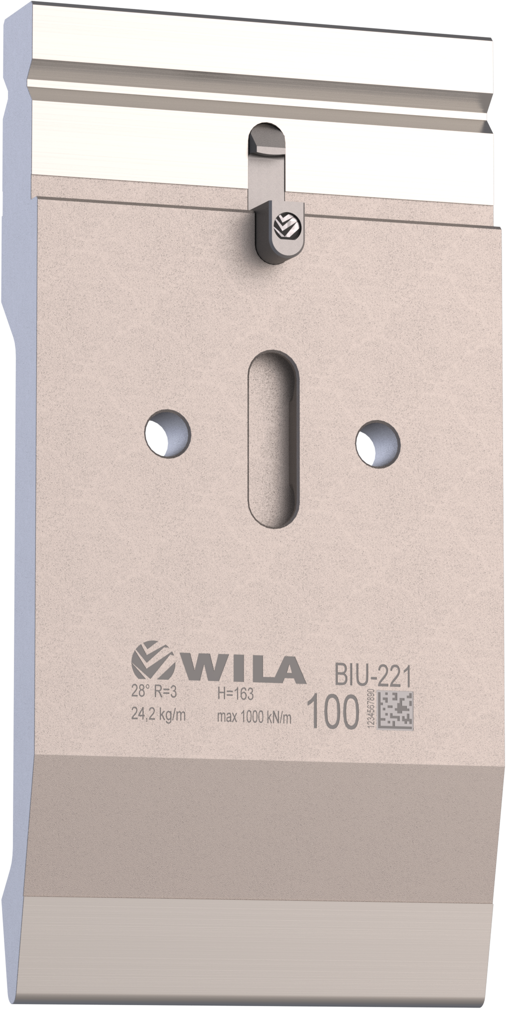 New Standard Premium bovengereedschap voorzien van WILA New Standard ATC, met Werkhoogte=163mm, α=28°, Radius=3mm CNC-diepgehard® (minimaal 4mm / 56-60HRc), Materiaal=CR-MO, Max. belasting=100ton/m. Voorzien van Safety-Clicks®, waardoor de gereedschappen snel, makkelijk en veilig verticaal te wisselen zijn.