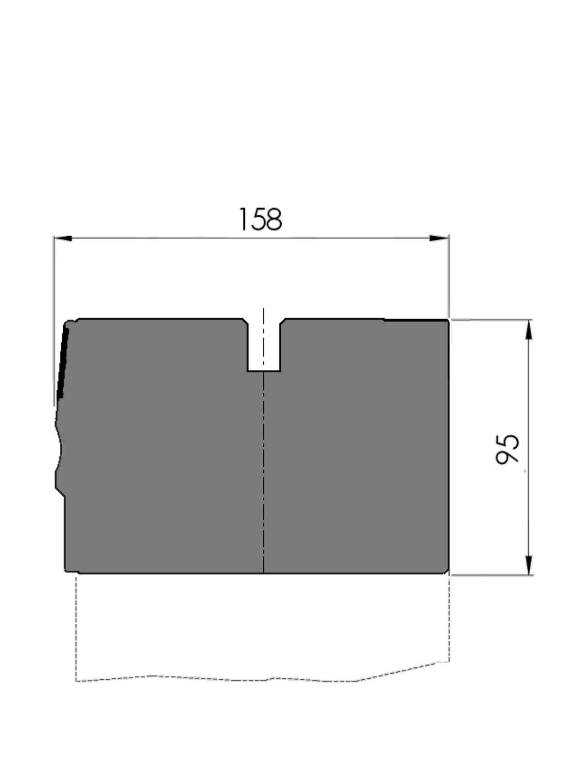 Working height=95mm, Width=158mm, provided with hole pattern which is suitable for the fixing holes according to your requirements , hydraulic clamping (max. 50bar), oil supply ø10mm, left-rear, Material=C45 not hardened, weight: 112kg/m, max.load: 500ton/m.Delivery with coverstrip and scale (front side, metric, "0" at the left).