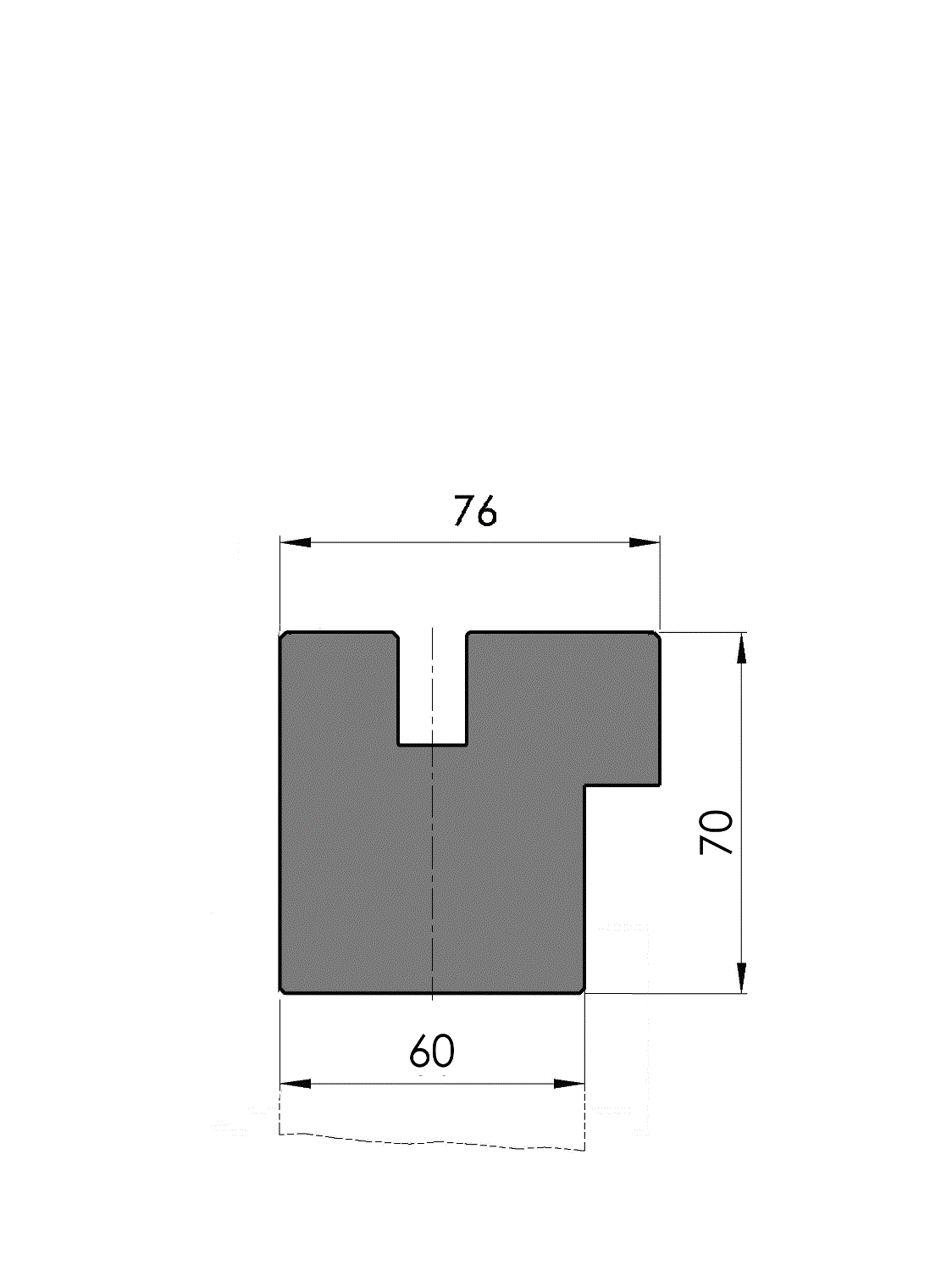Working height=70mm, Width=76mm, provided with UPB-hole pattern which is suitable for the fixing holes according to drawing no.: 31364, hydraulic clamping (max. 50bar), oil supply ø10mm, left-rear, Tx-alignment, Material=C45 not hardened, weight: 32.1kg/m, max.load: 200ton/m.