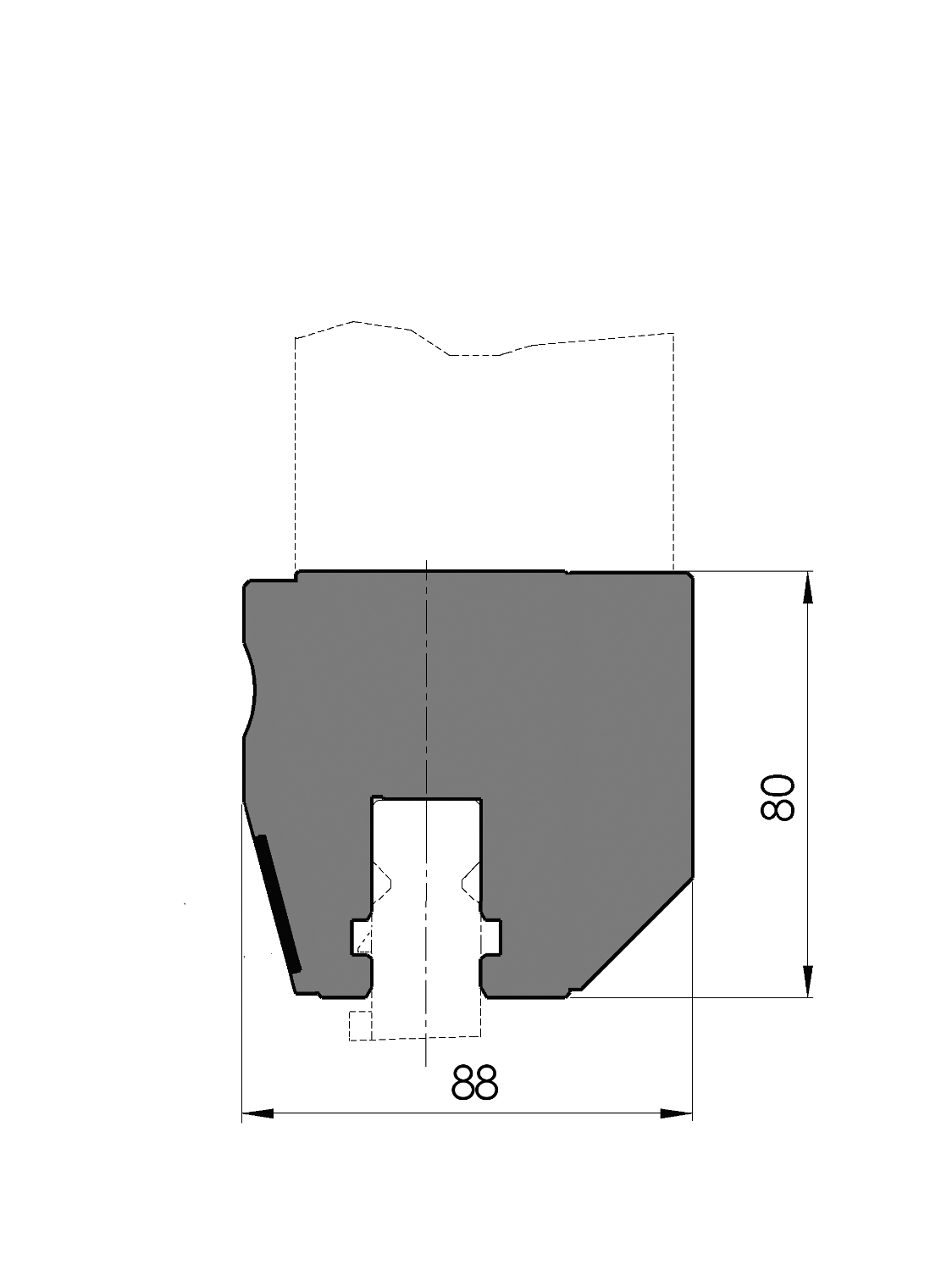 Working height=80mm, Width=88mm, provided with UPB-hole pattern which is suitable for the fixing holes according to drawing no.: 31364 with Tx-alignment, hydraulic clamping (max. 50bar), oil supply ø10mm, left and right top, Material=C45 not hardened, Weight=32kg/m, Max. load=250ton/m.