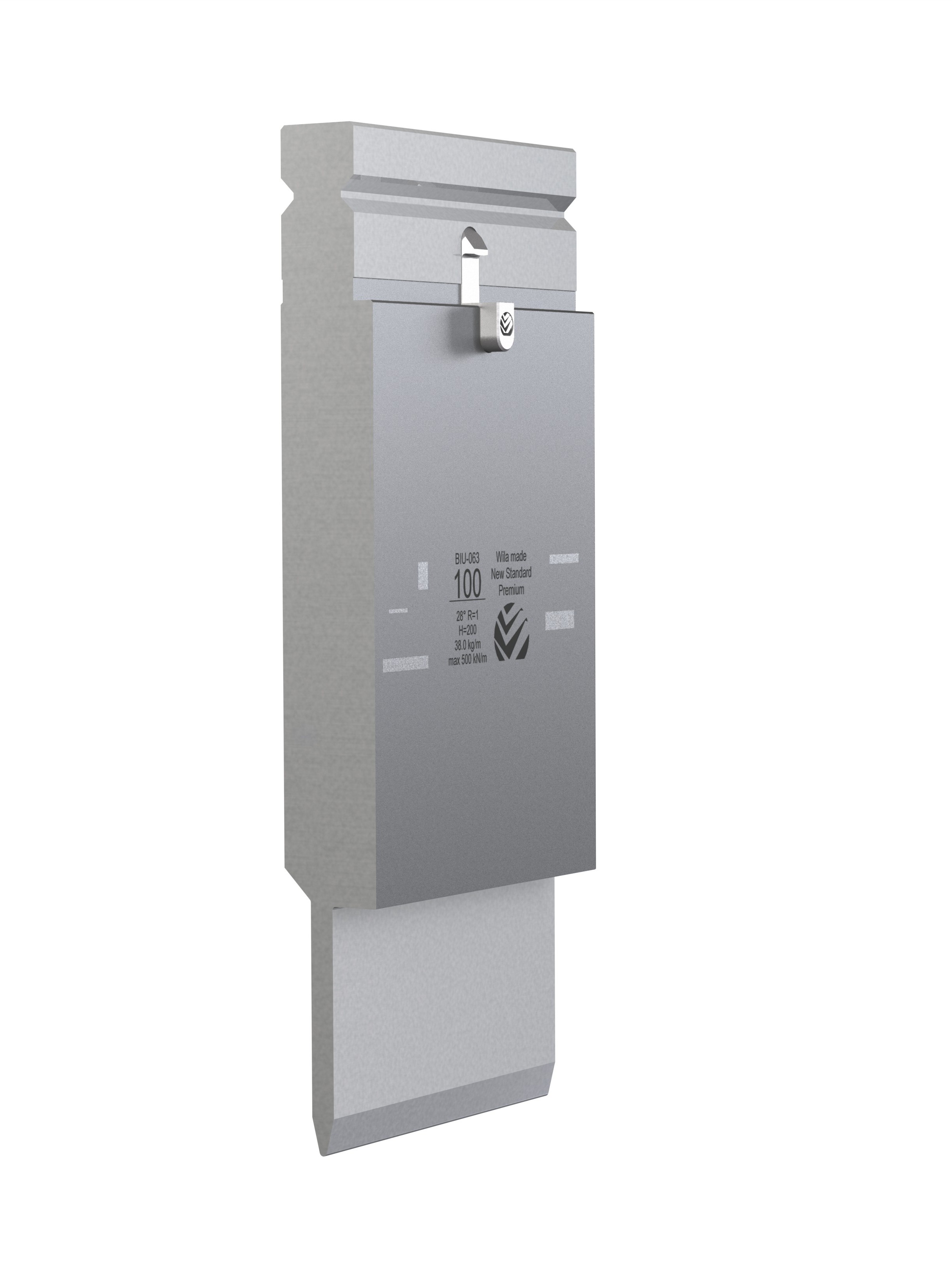 New Standard Premium top tool with Working height H=200mm, α=28°, Radius=1mm including flattening surface, precision ground and CNC-Deephardened® (at least 4mm / 56-60HRc), Material=CR-MO, Max. load=50ton/m. Parts <12.5kg provided with Safety-Clicks™, which allows you to change the tooling vertically; all other parts provided with fixed safety pins, which only allows you to change the tooling horizontally.