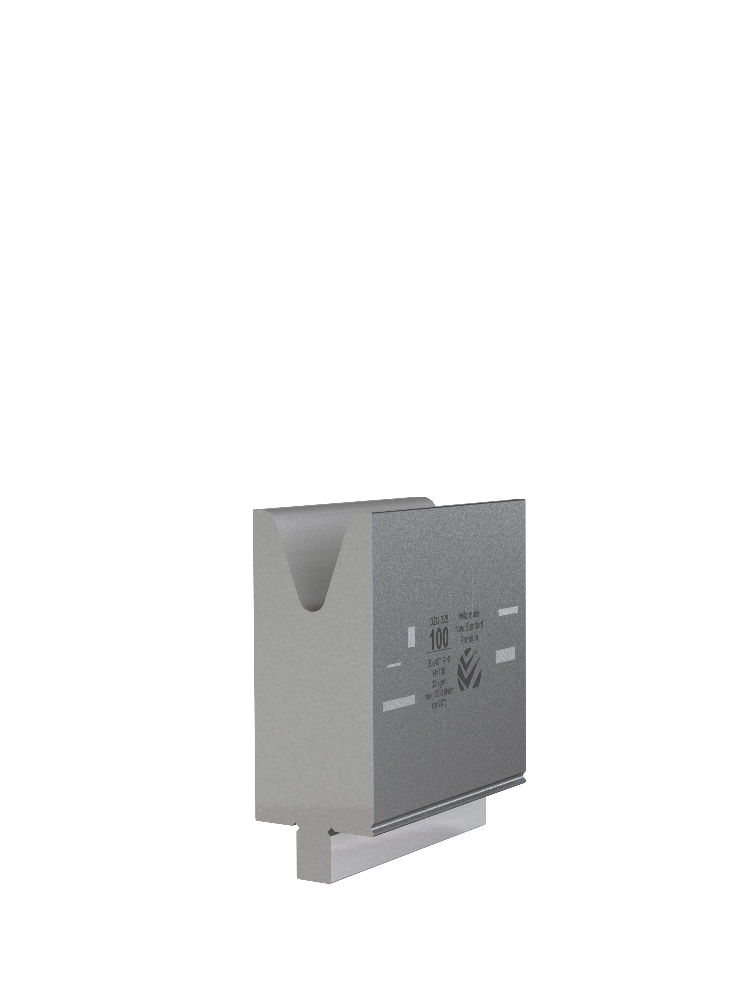 New Standard Premium bottom tool Working height=100mm, V-opening=30mm/40°, Bending radius=6mm, precision ground and CNC-Deephardened® (at least 4mm / 56-60HRc), Material=CR-MO