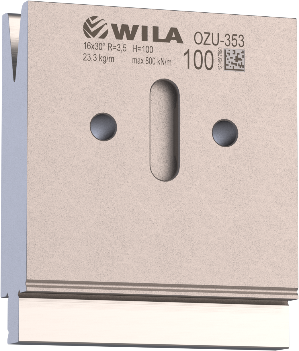 New Standard Premium bottom tool provided with WILA New Standard ATC, Working height=100mm, V-opening=16mm/30°, Bending radius=3.5mm CNC-Deephardened® (at least 4mm / 56-60HRc), Material=CR-MO